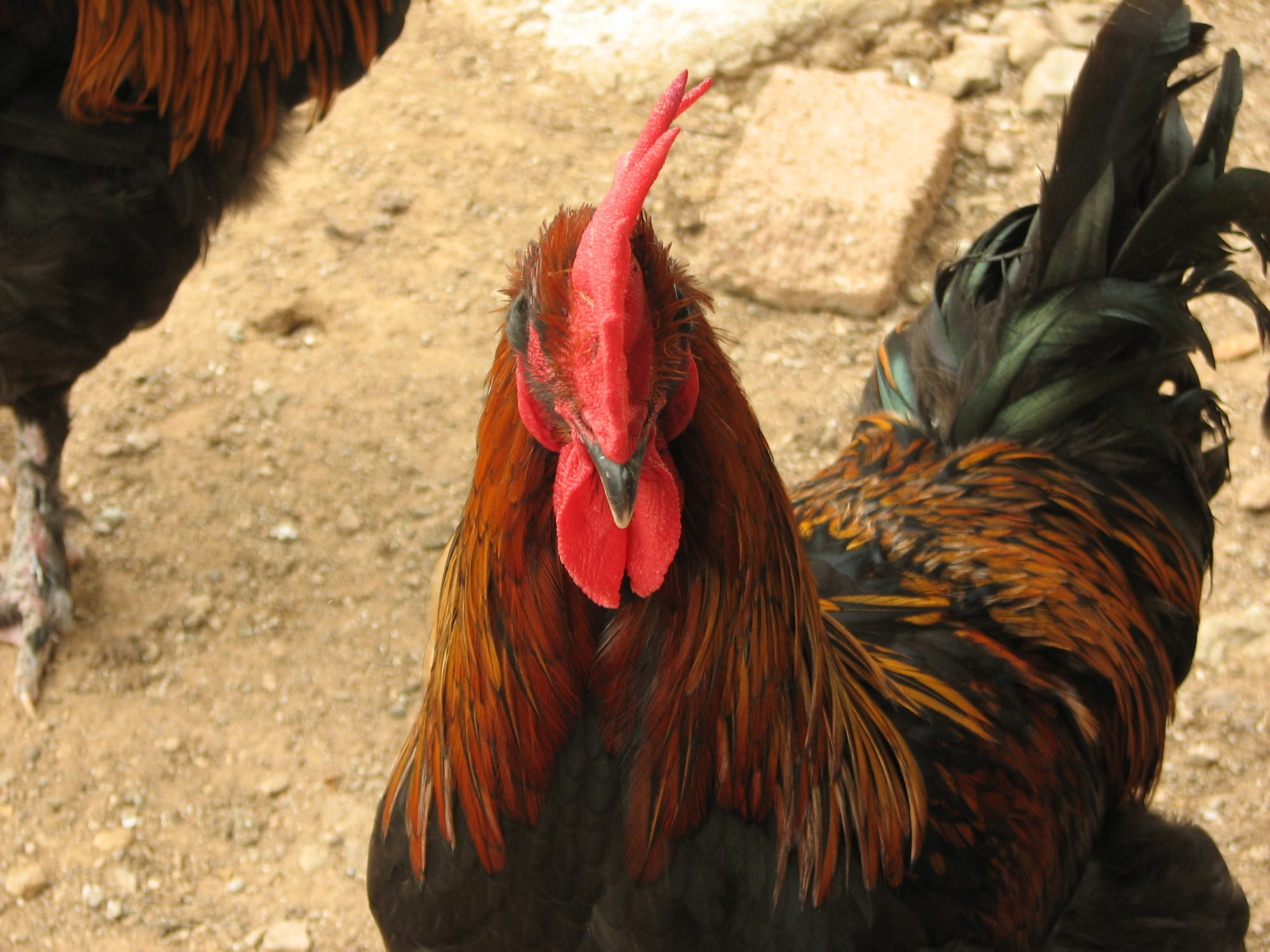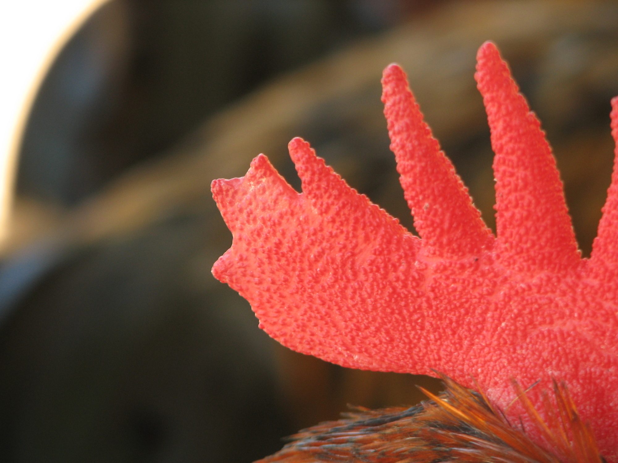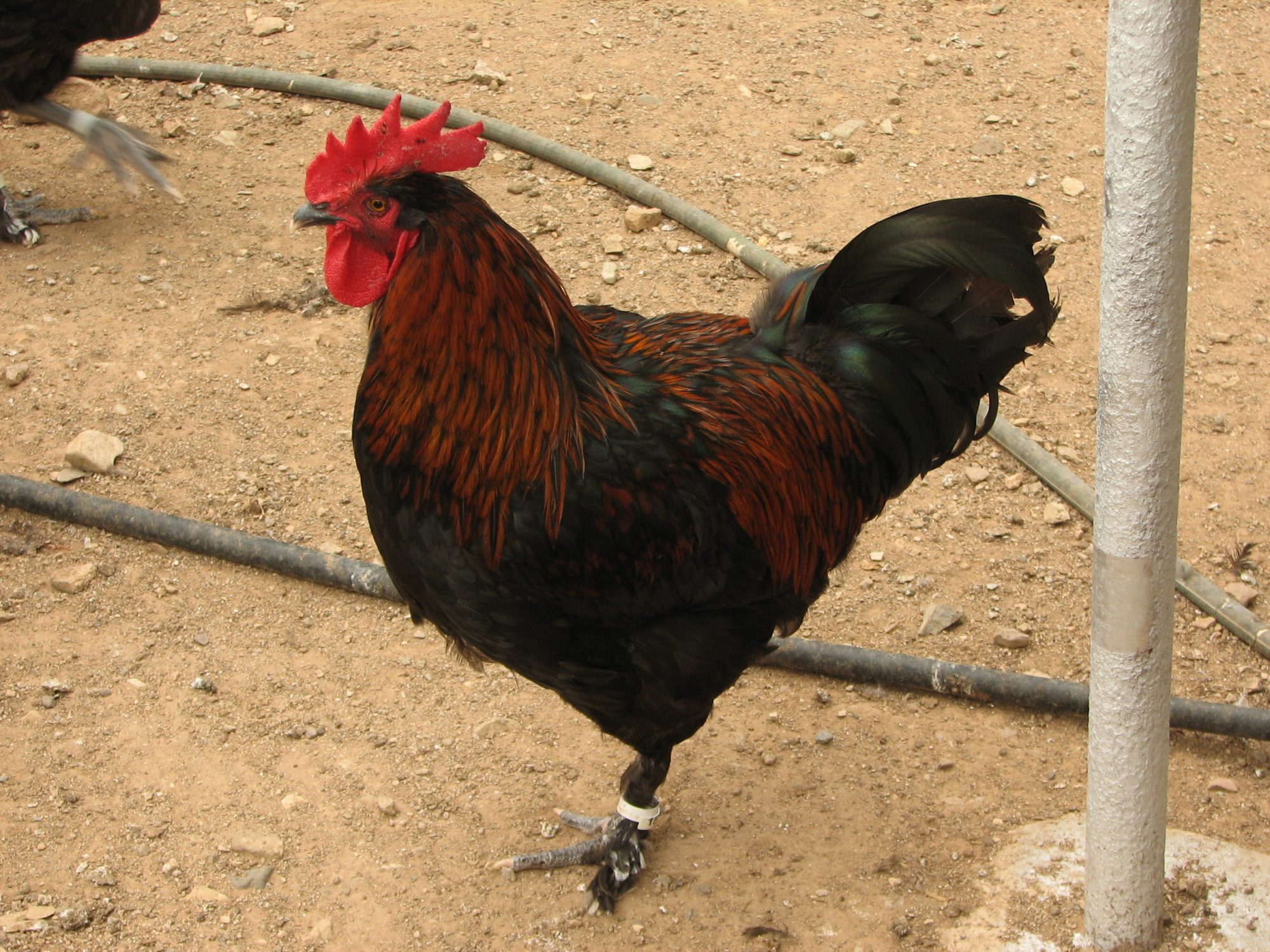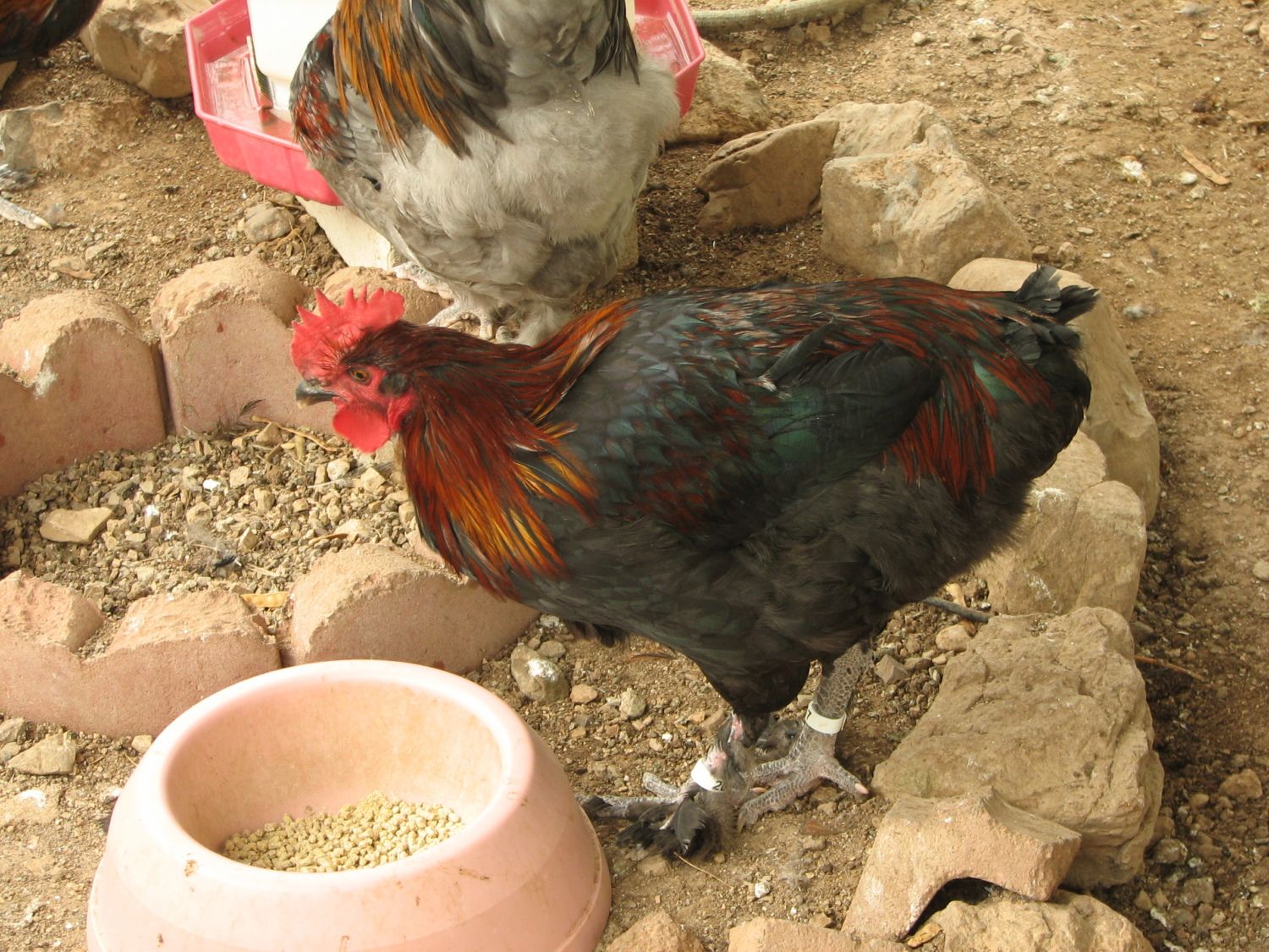 I think Don may have been referring to what looks like a split in the blade of his comb.Sorry for the repeats, but I'm going to post pics again of my remaining 6 Black Copper Marans cockerels for critique. I took new pics of them the other day when it was actually in the 70's---such a welcome break from the heat---so they weren't all hot and panting and holding their wings funny. Here is BCM cockerel #11. Don didn't like his tail carriage and comb before---honestly, I am not seeing the problem with his comb. His tail set is a bit high, but doesn't look completely like a squirrel tail to me. His wing carriage was off before, I think from the heat--I think it looks okay now. I like his color and overall size. I don't like his tail carriage and white foot feather(s).