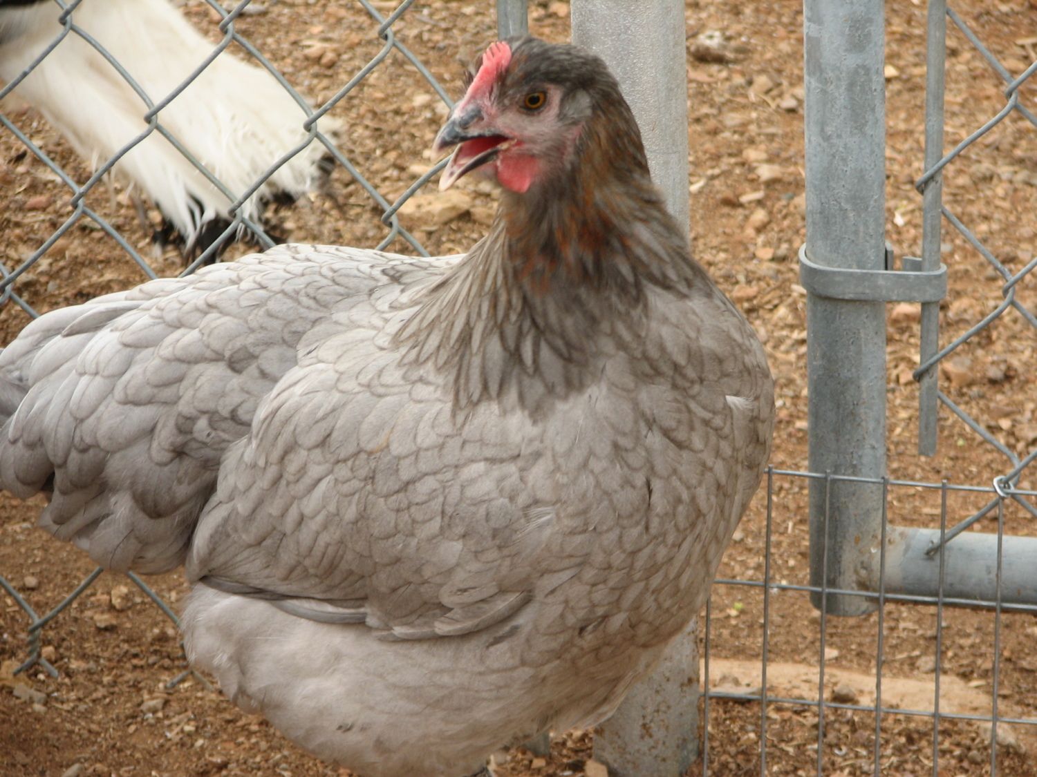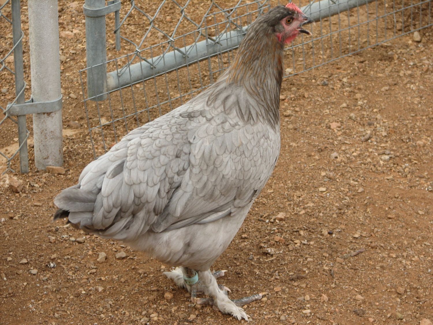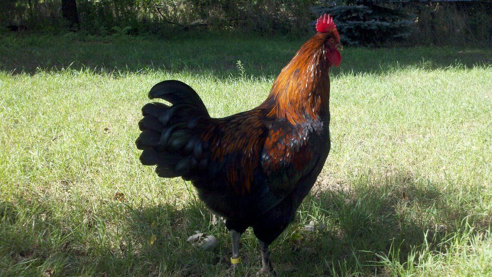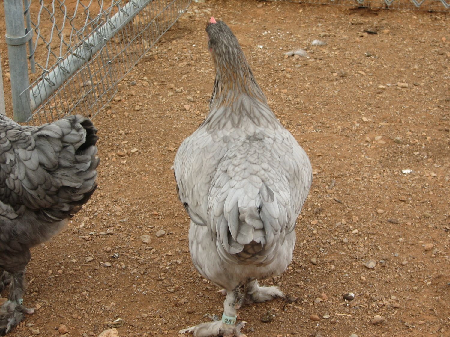 Here are the two Blue Copper pullets I have that have the most copper hackles. Still not enough, IMO, and both are too light in color with poor lacing. But both have the correct eye color. I went through all 7 of my Blue Copper pullets a couple of days ago and made undated notes and checked for sprigs again (none found