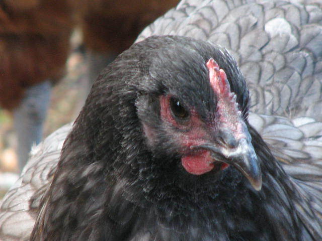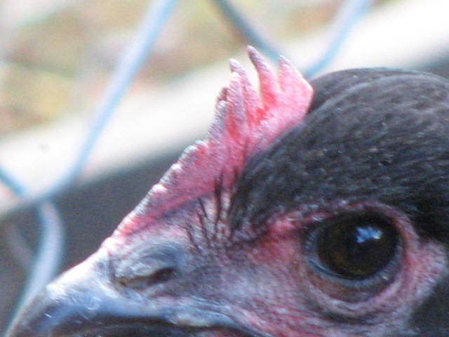 Elisha~ She has beautiful lacing.....but she is very dark and the eyes are very dark. Ad this to the twist in the comb and I would use her for pretty eating eggs and not for breeding.