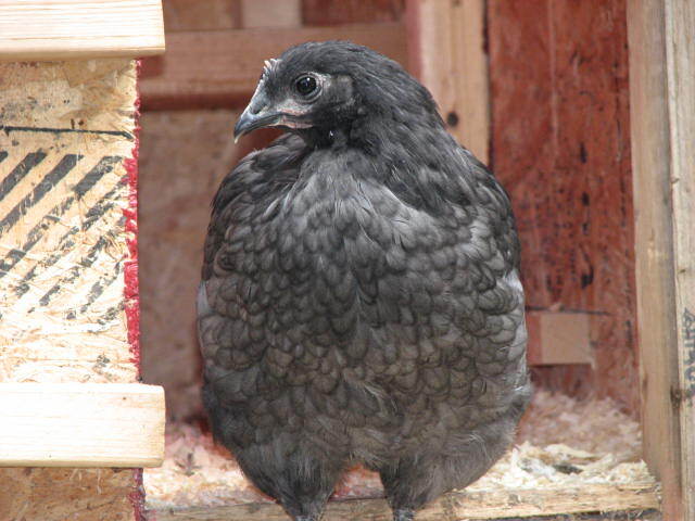 Awwww! She's lovely but looks as though she is going to be very dark as well. Man I tell ya....what I wouldn't give for some of those lovely copper collar'd girls like Vicki's Blue Copper pullet, Luella.![]()