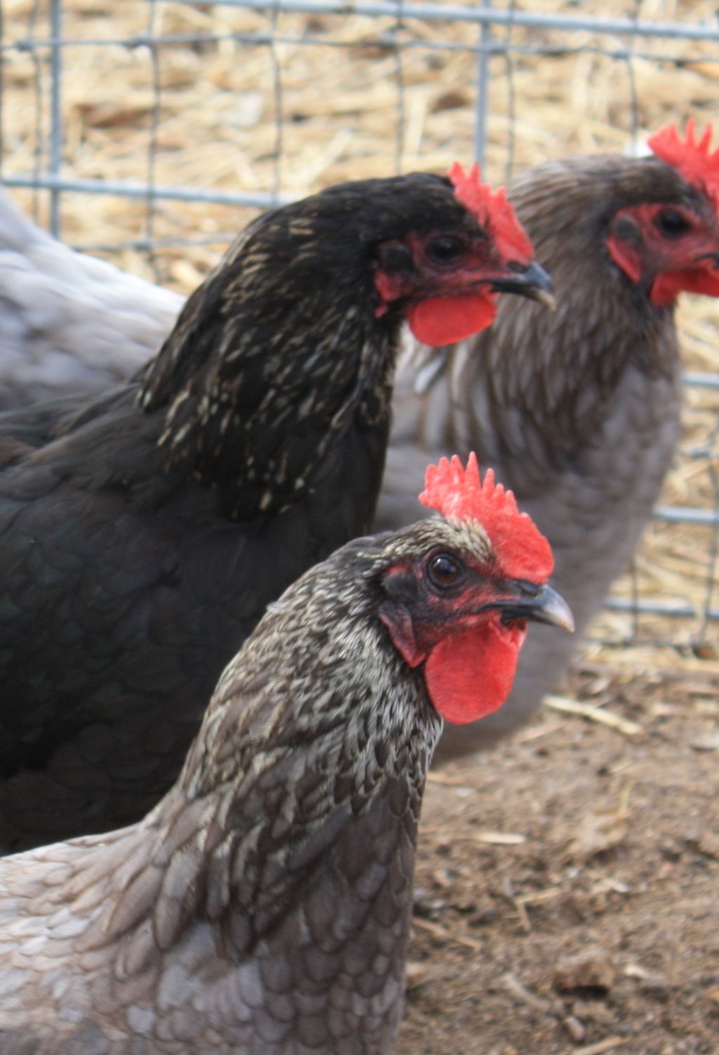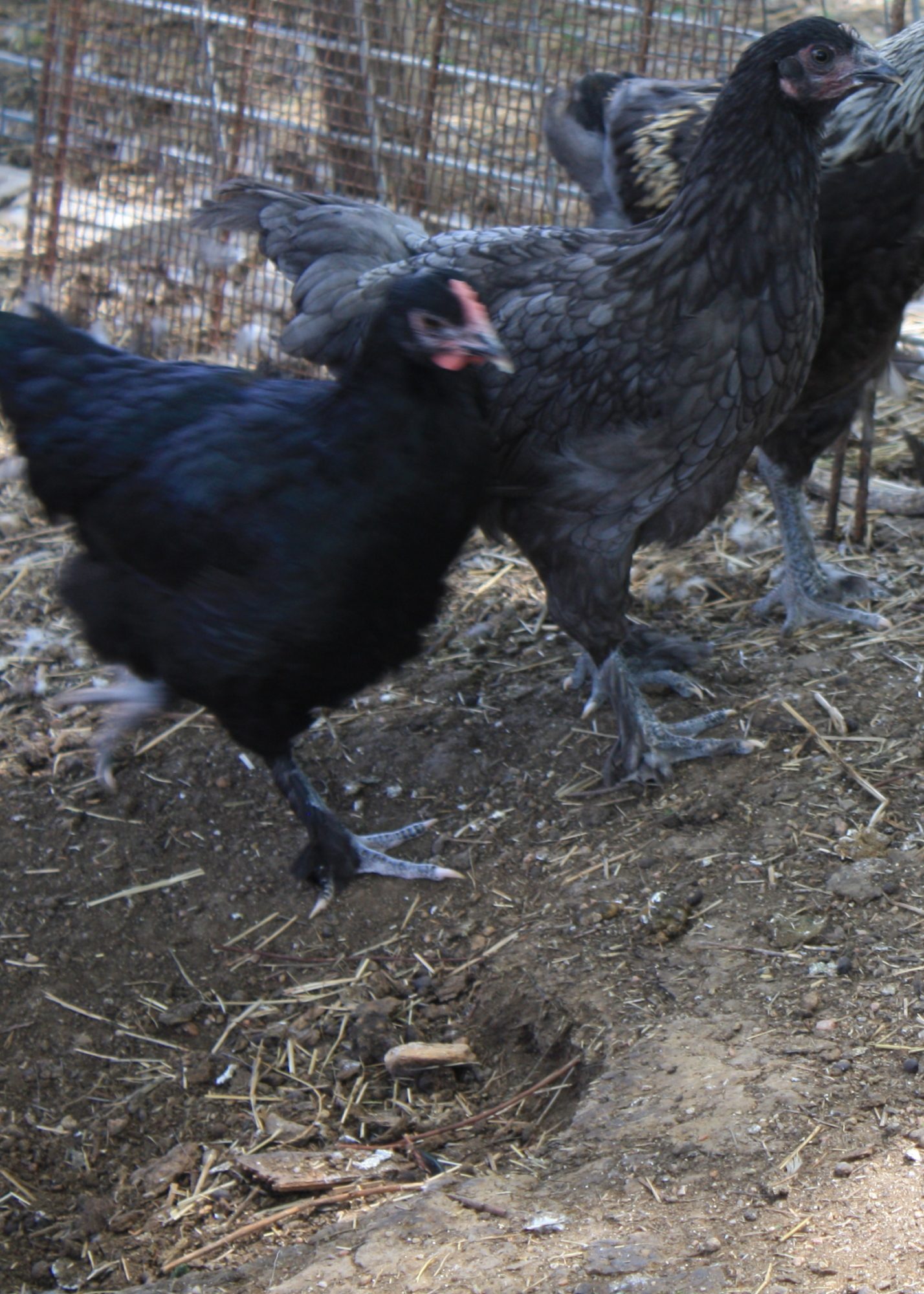 The silver Birchen Marans is a black bird with silver on it's hackle, saddle and wing bows. It has a red comb and wattles with golden eyes. The shanks have a pink dermis and slate epidermis. There is no lacing on the breast.