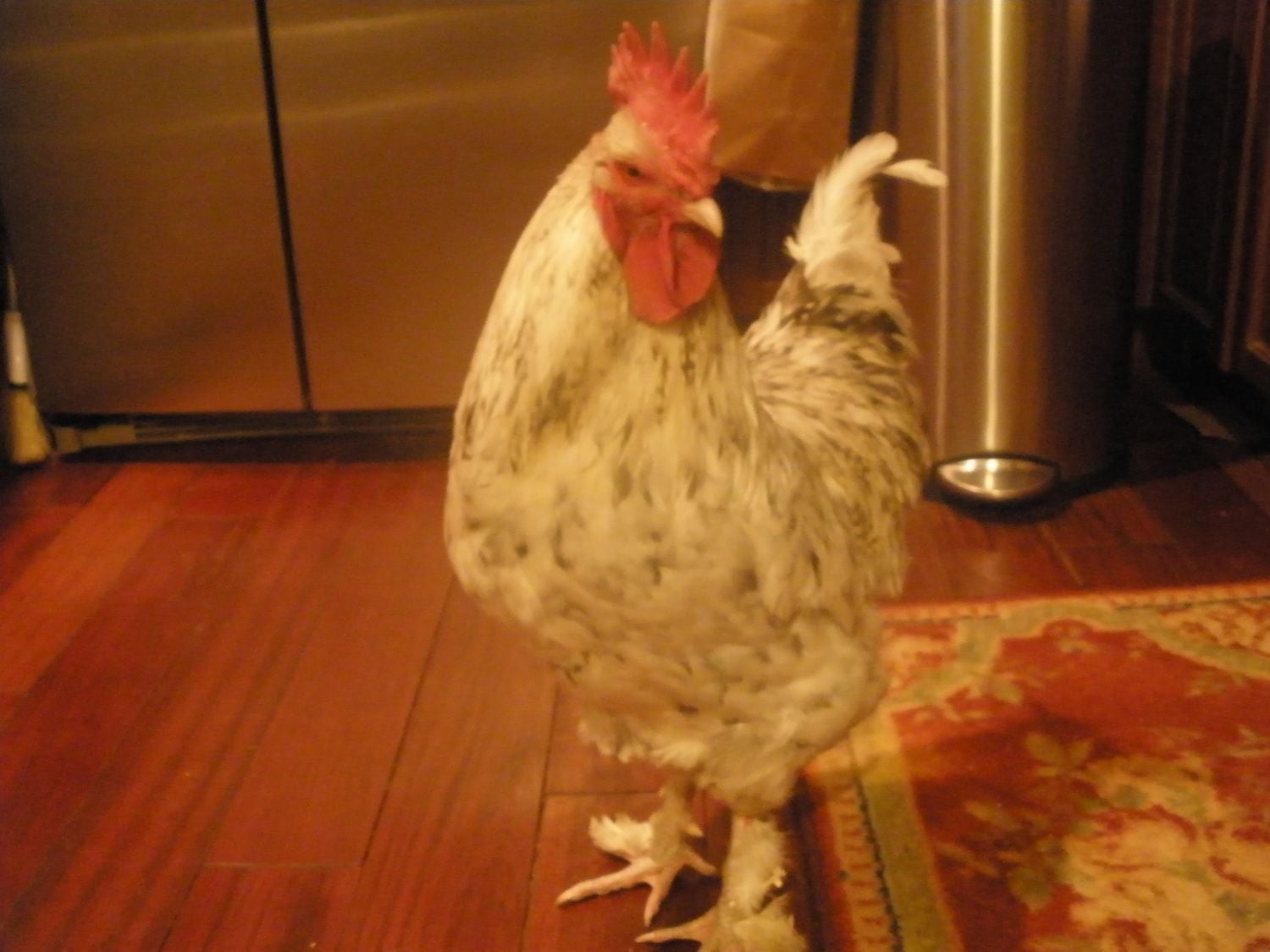 Just bad pic , he have no upright tale just this how i get him, also he only 7 mo old still lot to fill.He's father much better just on molt.Thanks for posting pics! I don't mean to be nasty, and I am not an expert, but to me, the black copper male has some issues...his tail it too upright (should be 45 degrees), his back is much too short, his underline is not as rounded as it ought to be, his breast is too flat, and shanks are too dark. However, he does have excellent color balance, and shank feathering is really good! Would love to see the splash in profiel - he appears to have much better type. Again, I'm not an expert, and I hope I have not upset you, as that was not my intention.
