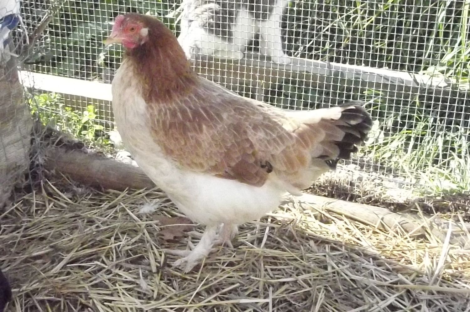 Vicki, I posted a few pics on my FB page for you to look at, the one I am concerned with is of "Kiwi", the black girl with the freaky tail! No NPIP huh?? I can understand why on several counts. Here is a quick pic I got today of my only Wheaten girl, "Wheatie Pie" at 23 weeks. She is going to be a big girl, she is already almost the same size as my hens!