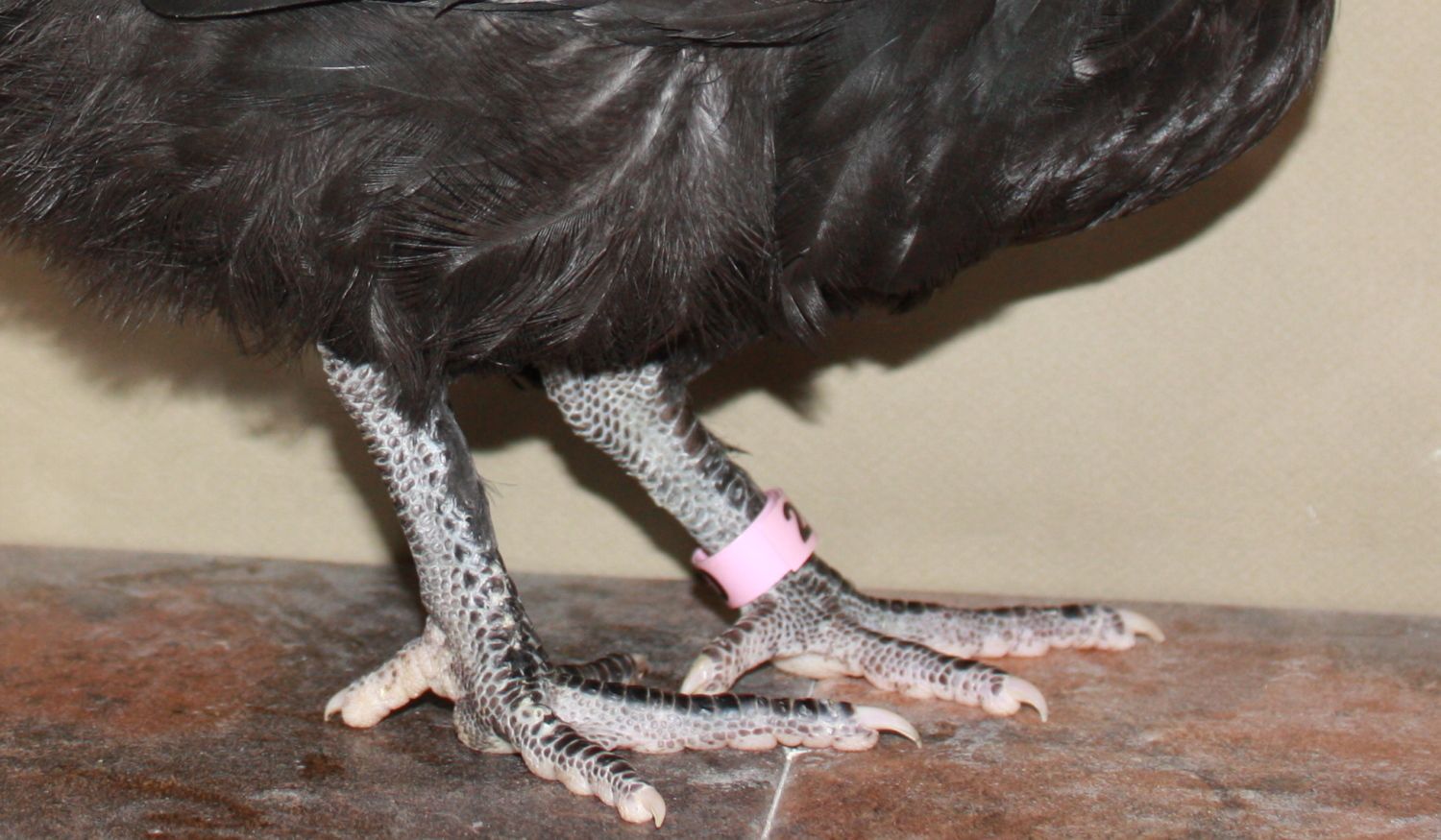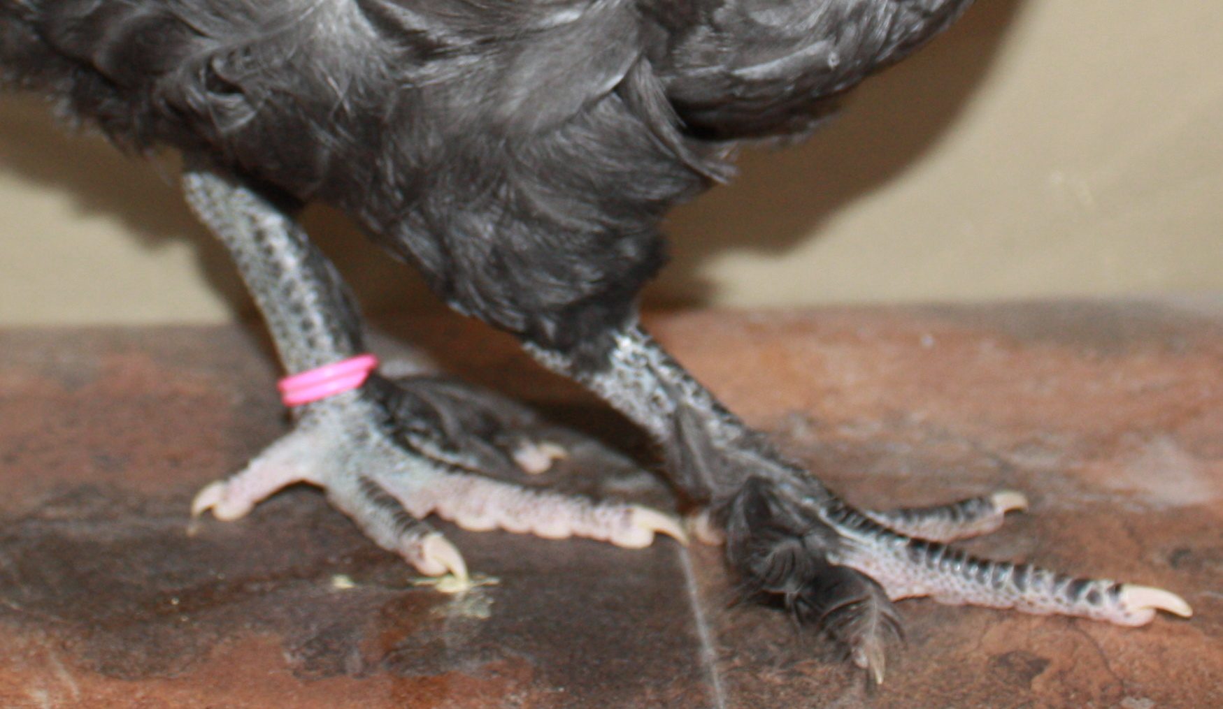 Ok, without taking all day to sort out for the perfect photo, I grabbed a couple of reject shots of birds at odd angles when they were young and cropped them in. I try to stay at this range most of the time as I get the best results and do notice as the birds get more size (these about about 8 weeks old) the scales become that nice even slate. If I select chicks with the light slate at this age, they end up too light in the legs for my liking when they get older.