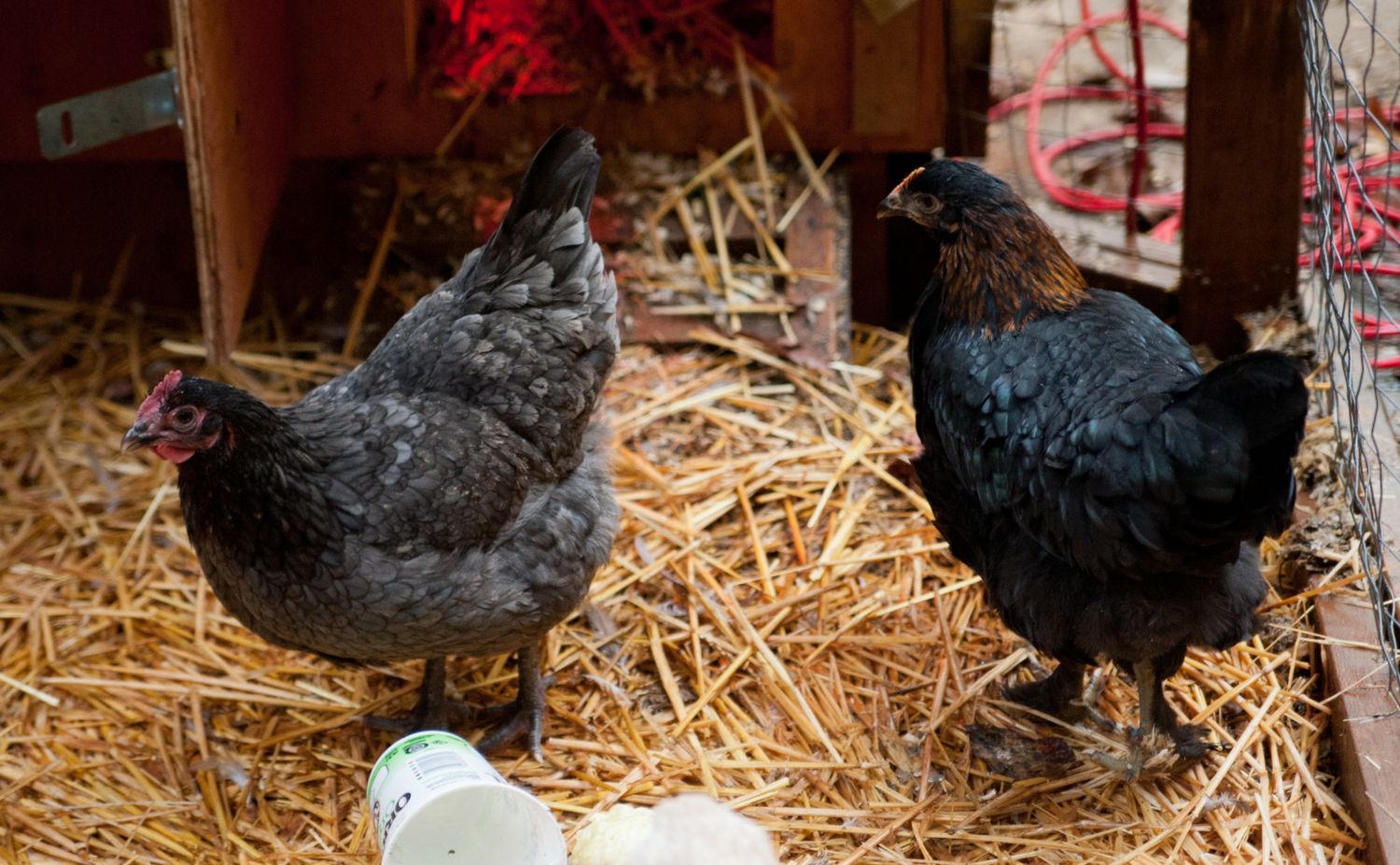 You can see the different colour of red as opposed to the copper pullet.