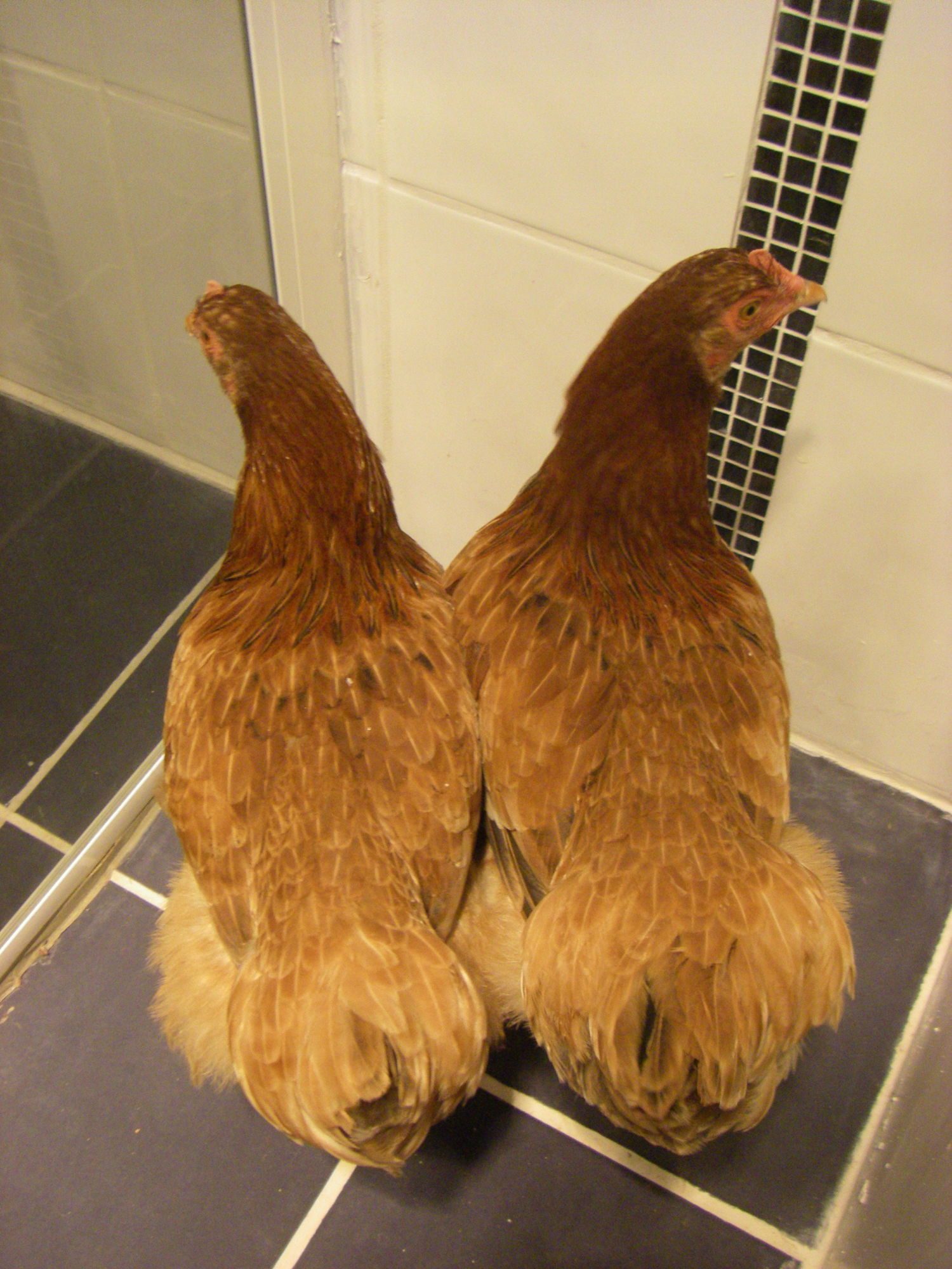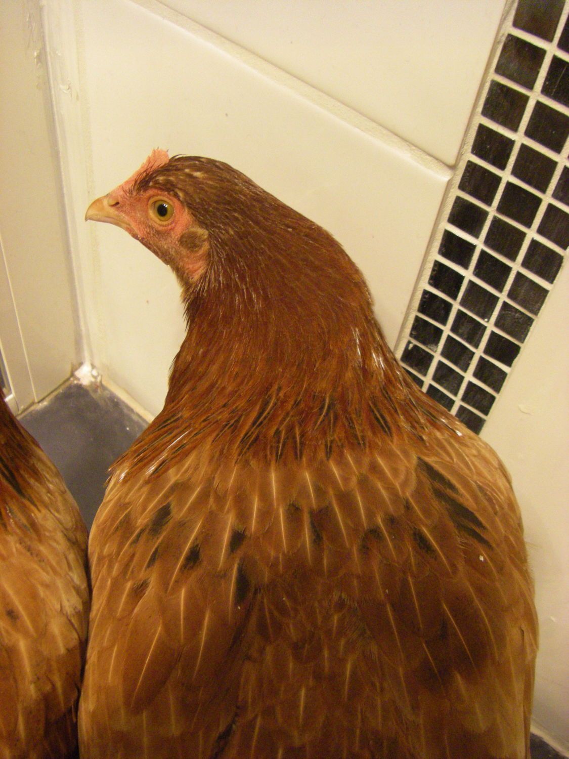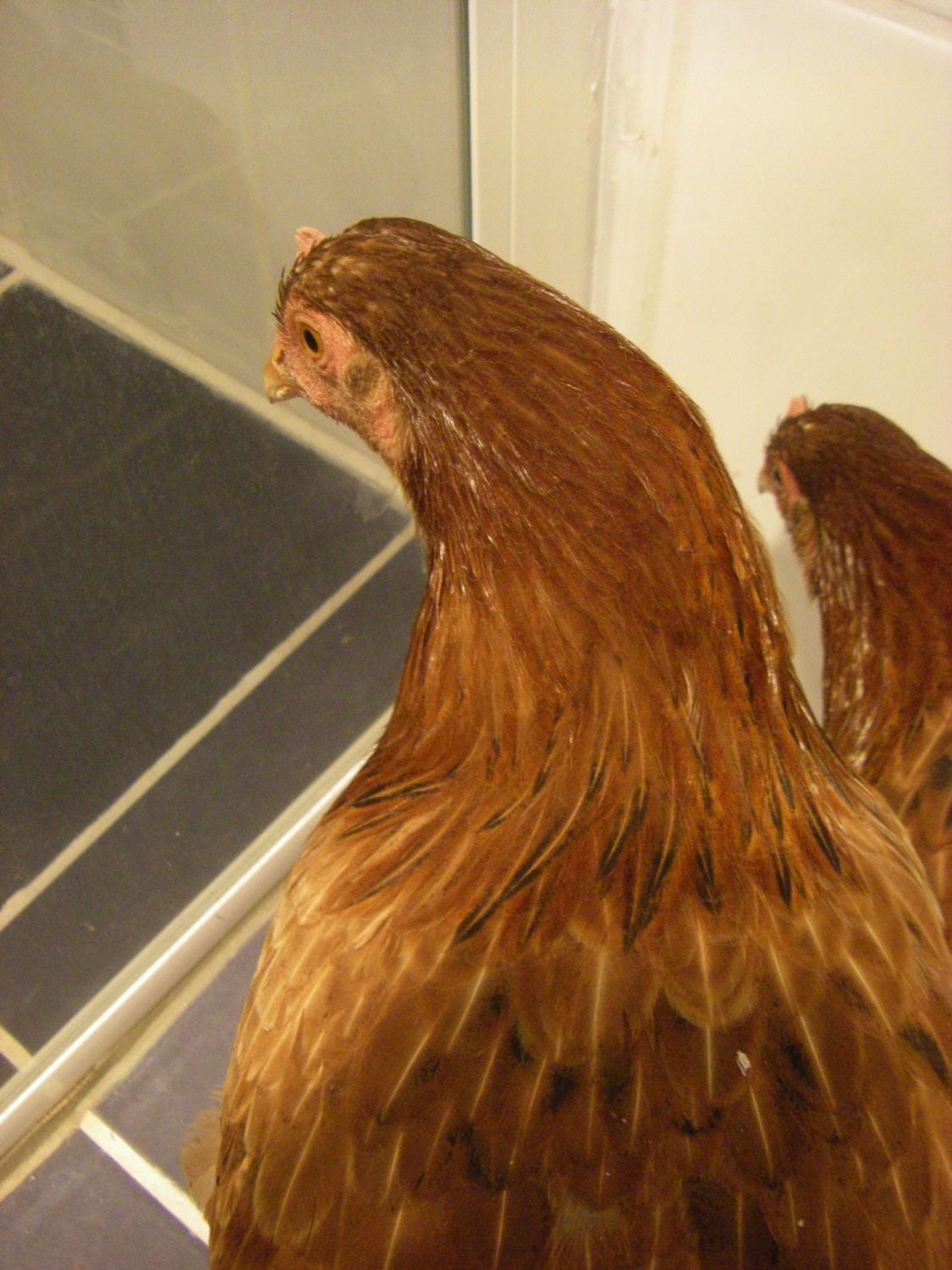 A. Back of neck. They have both got some nice Red and black coming in around the base of the neck ( where hackle feathers would be )