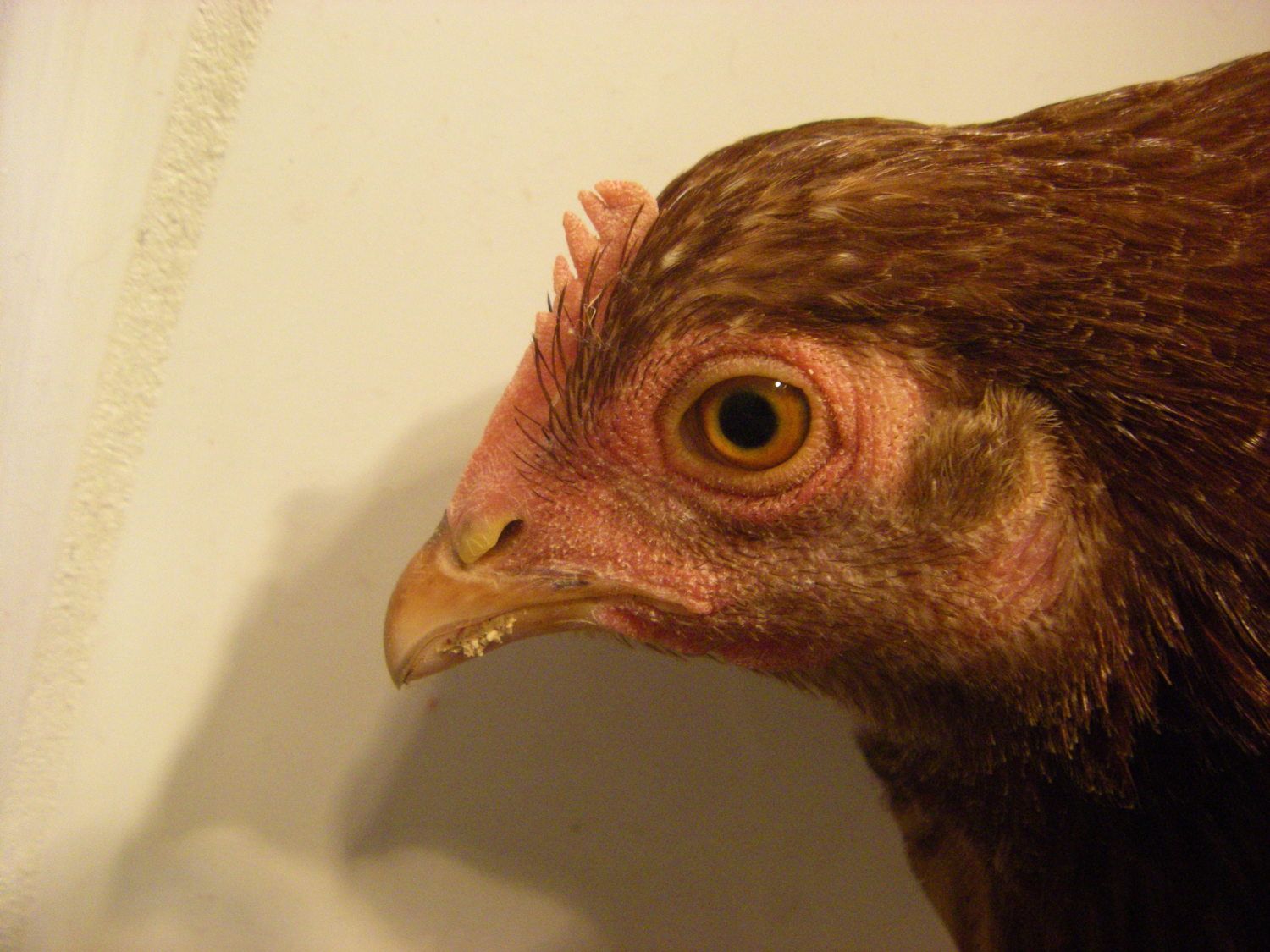 A's face. Note the 5 point comb. Excuse the food on the mouth.