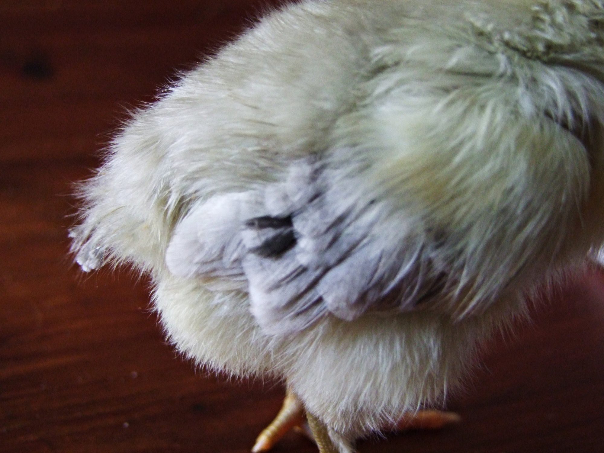 I have 4 day old chicks. I have 9 black copper marans, one black chick that looks like a black copper maran but has white detail on its face and white wing tips, and I also have a light colored chick that hatched from a very dark brown egg. The rooster is a sweet Black Copper Maran. The hens are buff orpington, (we didn't hatch any light colored eggs) black copper maran, and we have one wheaten hen and one lavender buff. I am thinking the light yellow chick is a wheaten since it hatched from a dark brown egg. The black chick with white detail I am thinking is a BCM/lavender cross? We were expecting all BCM since the eggs were so dark and we have a lot of BCM hens. Any help or pictures are appreciated.