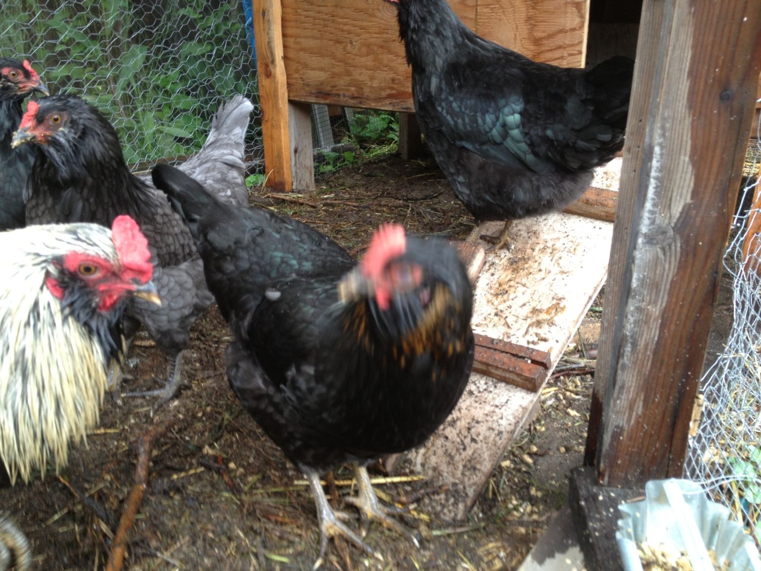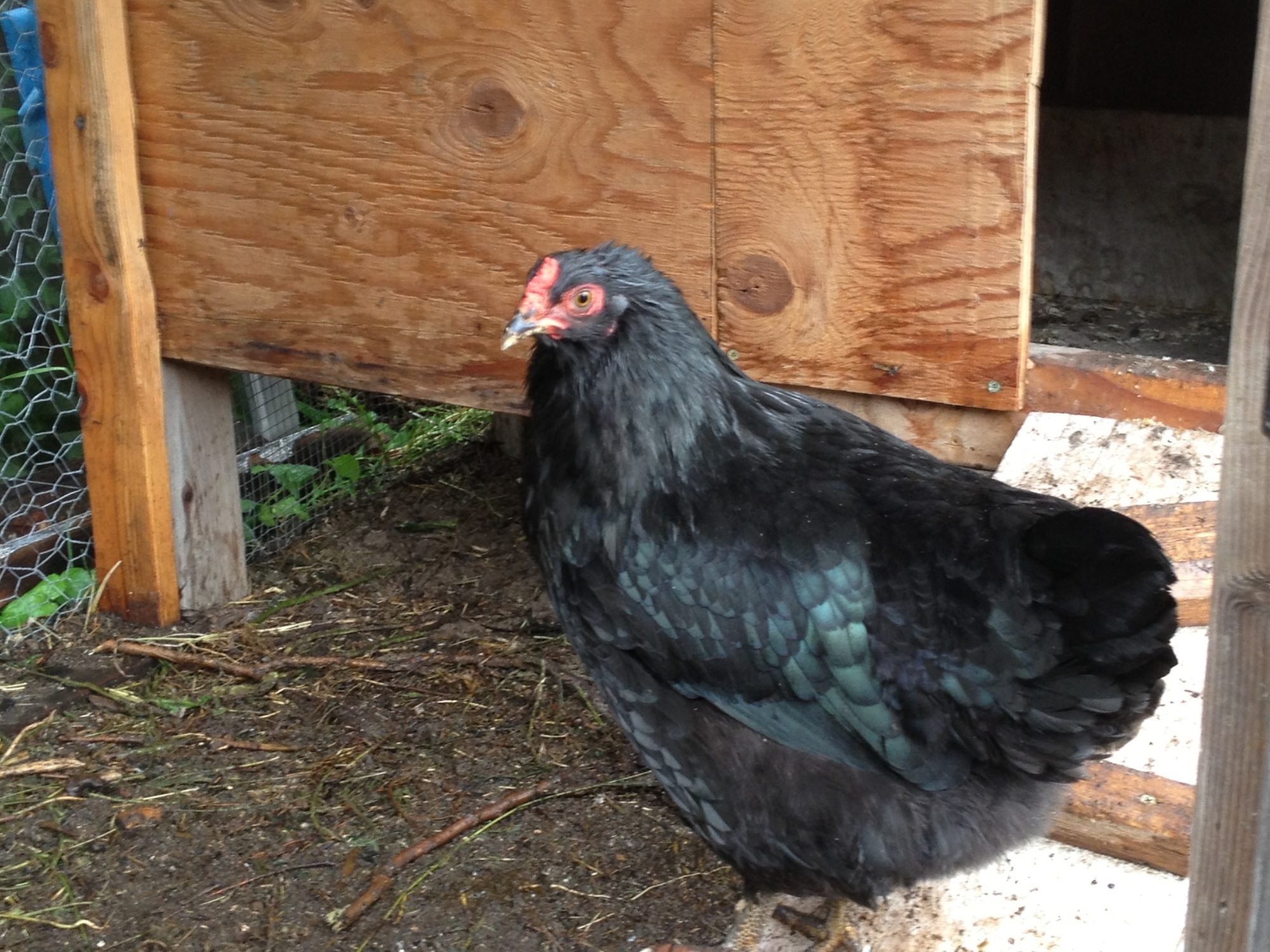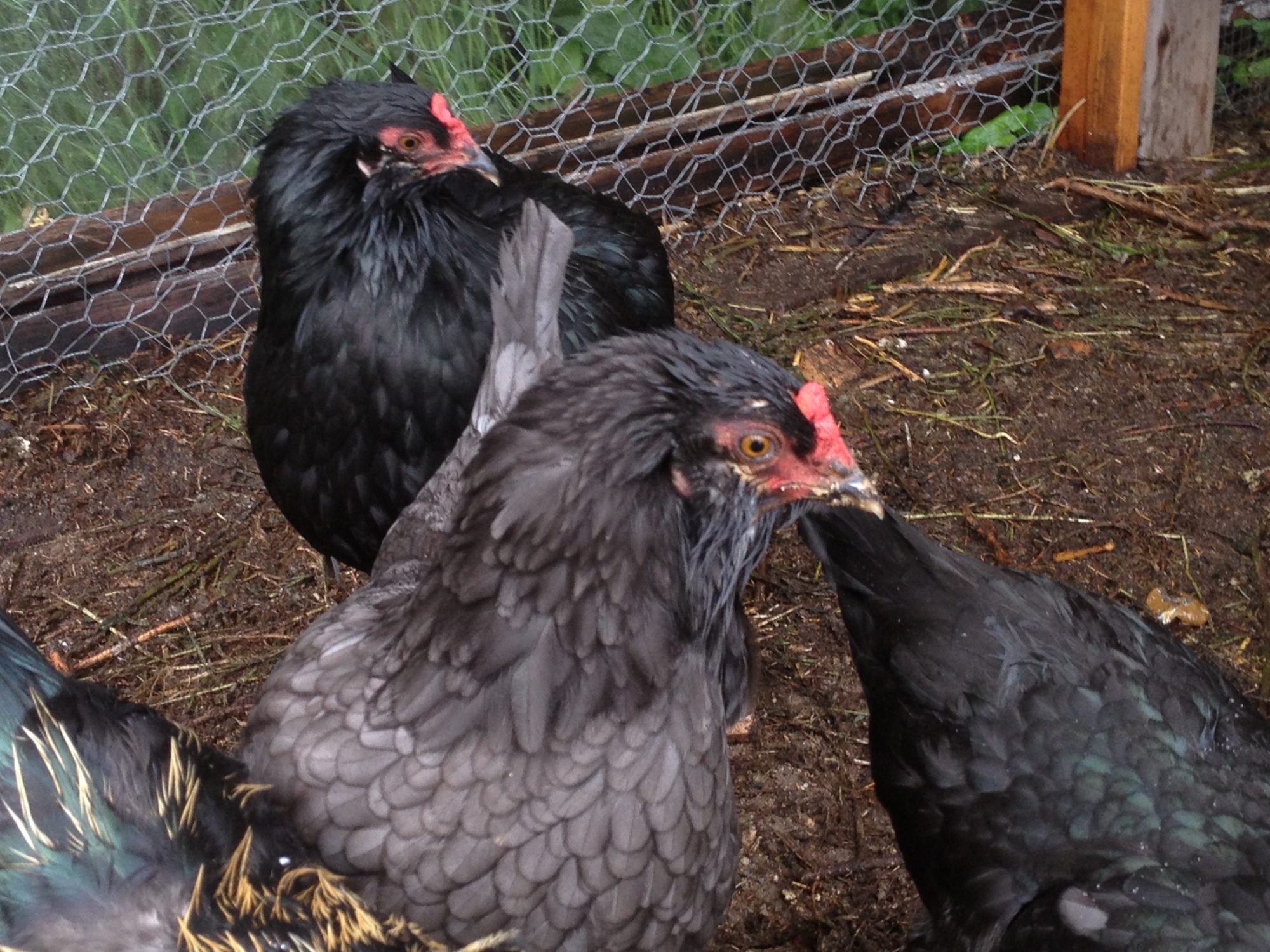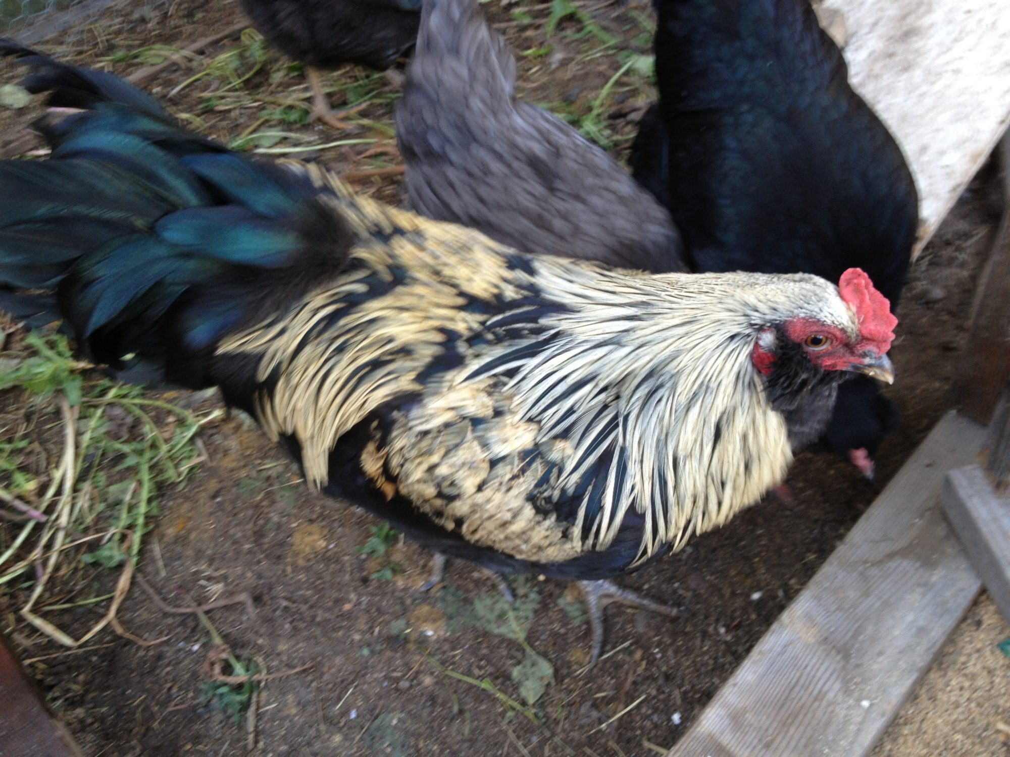 From here until about 5-6 months of age, I just watch them closely because they do a lot of changing during this time. I look for any white in the hackles of the males specifically. I also look for other things that I may have missed along the way or if the bird is just slow to show any faults or such. This is also the time that eye color changes on both male and female. Dark eyed birds are culled unless they have more good to offer than not, but for the most part I try to keep and breed birds with correct eye color. White in the wing tip that happens in some young Marans, if they have it, should by this time be covered or covering by black. I should say that if it is still there after their first molt it is undesirable and considered a fault for SOP breedings.