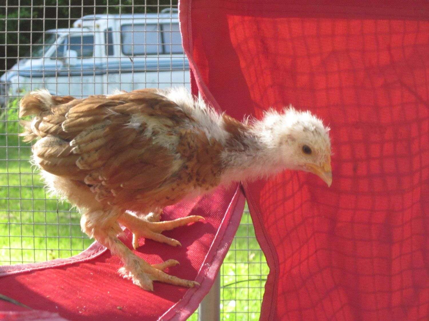 Even in very young birds I watch for how wide the bird is going to be in the shoulders and down the back to the tail. I look for good tail sets, long backs, nice deep keels and good distance between the legs when they are standing. I cull all birds that look knock-kneed or that have very little distance between the legs, I believe they are too narrow of a bodied bird and do not produce good offspring by way of broadness and type.
