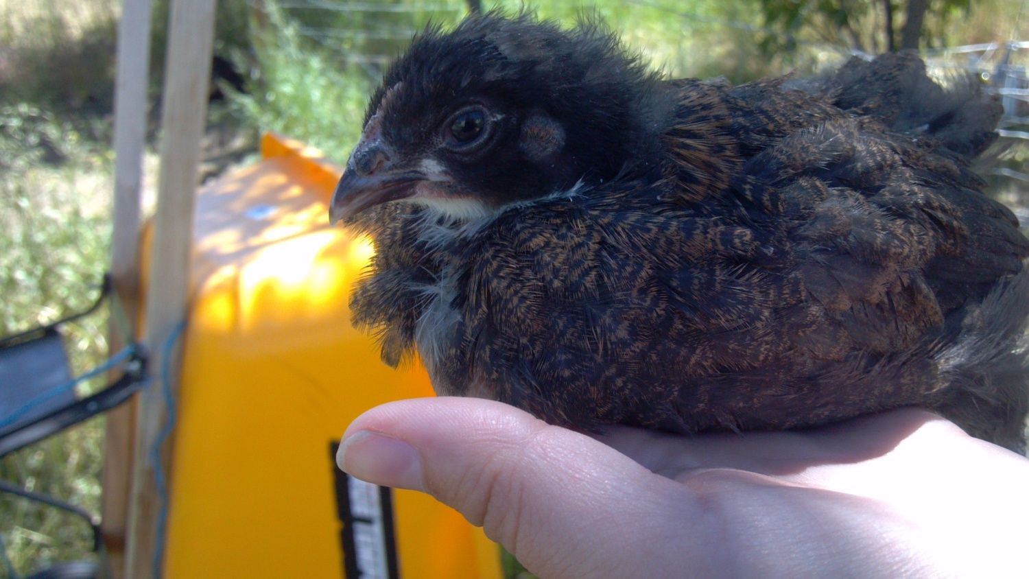 This pic he is one of those little blonde fluffy chicks. Sorry, can't find a better pic of the 3 wheatens at the moment.