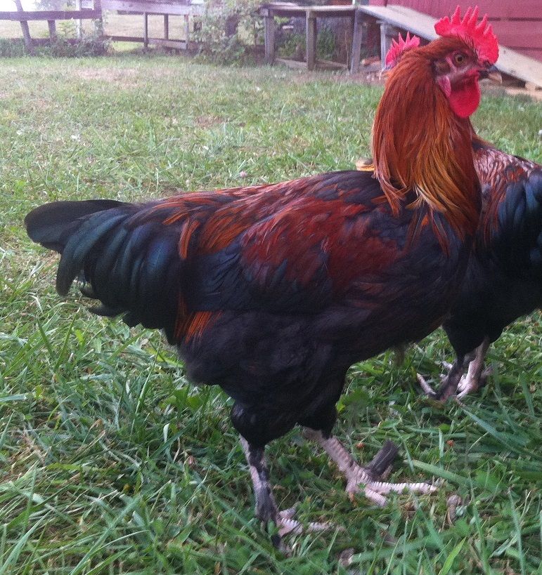 He is a mix of Black Copper and Blue Birchen Marans. The red on his shoulders tells us that he has both silver and red genetics. The silver on him tells us that he is a Birchen. He will not breed true if he is bred over Black Coppers or Birchens. What he will produce is a lot of work in making either variety correct, but for a pretty bird running around in the chicken yard.....he's great!Can anyone help me identify my Marans rooster color and type. He was bought from a breeder who sold him as a blue copper Marans. His color is wrong for that, but I am wondering if he is another type altogether... maybe a blue wheaten Marans or a blue birchen Marans?? Can he be responsibly bred with a blue copper female to produce babies, if so what would their offspring be?? All information about him is greatly appreciated. Below are some pictures of him now at about 22 weeks and some from about a month and a half ago below those. I think he is gorgeous and he is super sweet. Thank you.![]()