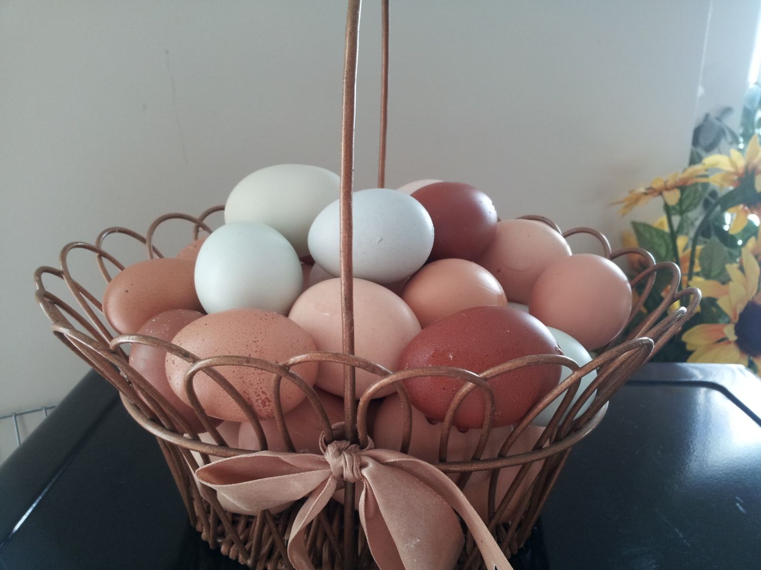 Good Morning Marans Peeps! After a less-than-stellar summer for egg production, I'm finally starting to get eggs again. The 2 darkest in the basket are from 1 of my marans pullets. She lays every other day so far. I took these out of the fridge just for the photo op. We'll seeif the newbies lay today - I'm not counting on it between the cruddy weather and their relocation.