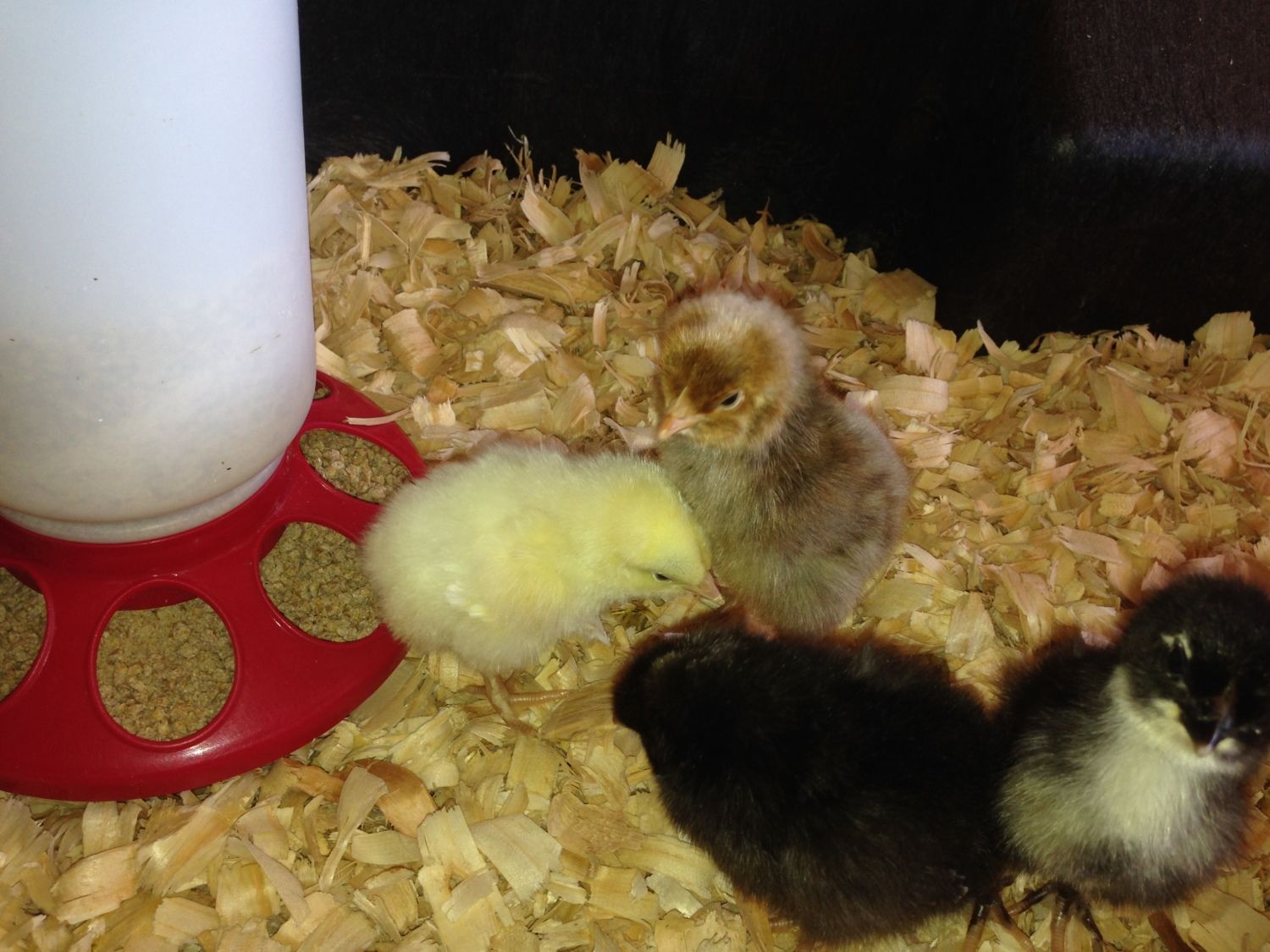One of the black ones feathers are coming in striped. Is that a birchen? I think the other one is a BCM, I already have some of them that I got as day olds. Interesting about the gold colored one. It might be the flash reflecting on the feathers, I will look closer tomorrow and see if there is a head spot. If so, I will be calling the hatchery!