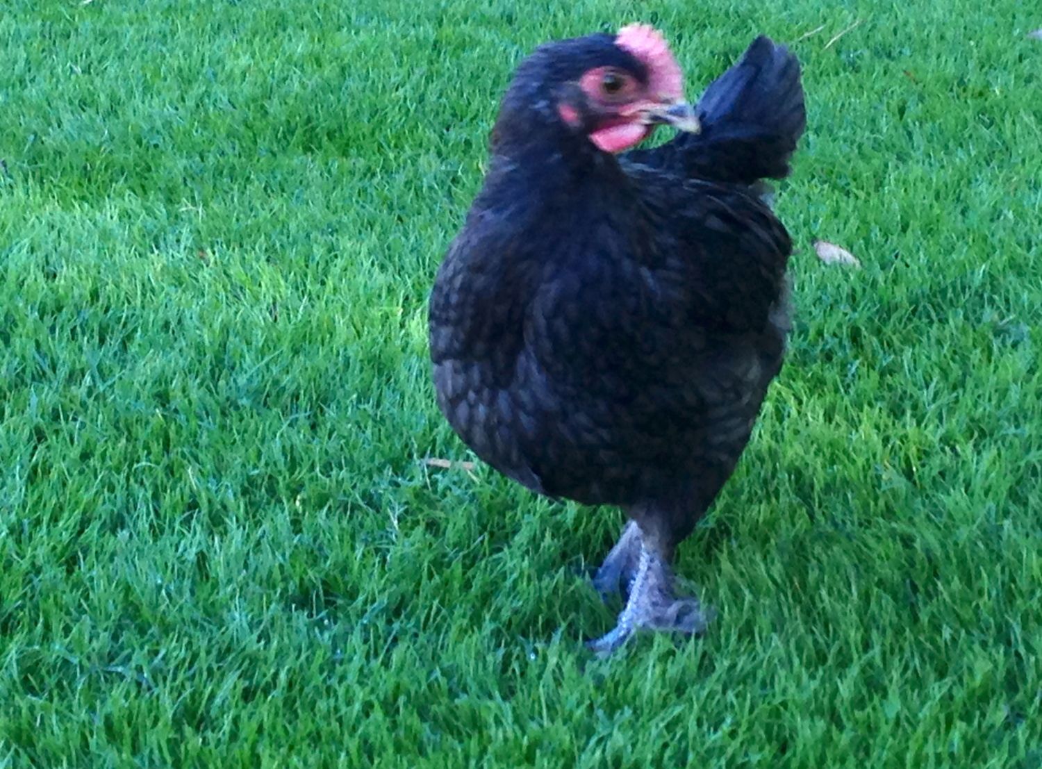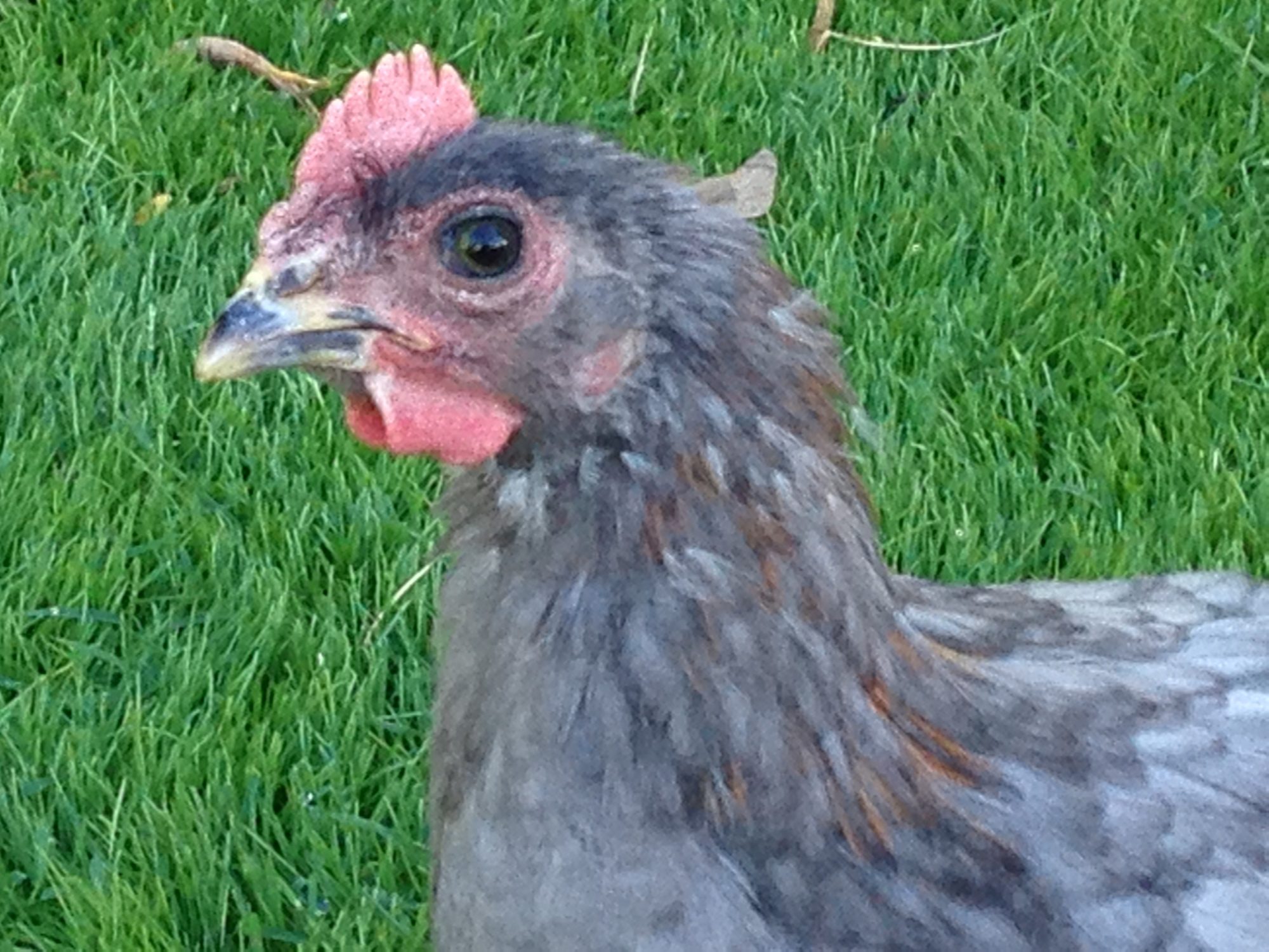 This is my girl, based on the lack of comb and waddles. Plus, she doesn't ruffle her neck and bump chests the way the other two do. Will the white on her neck go away after she molts?