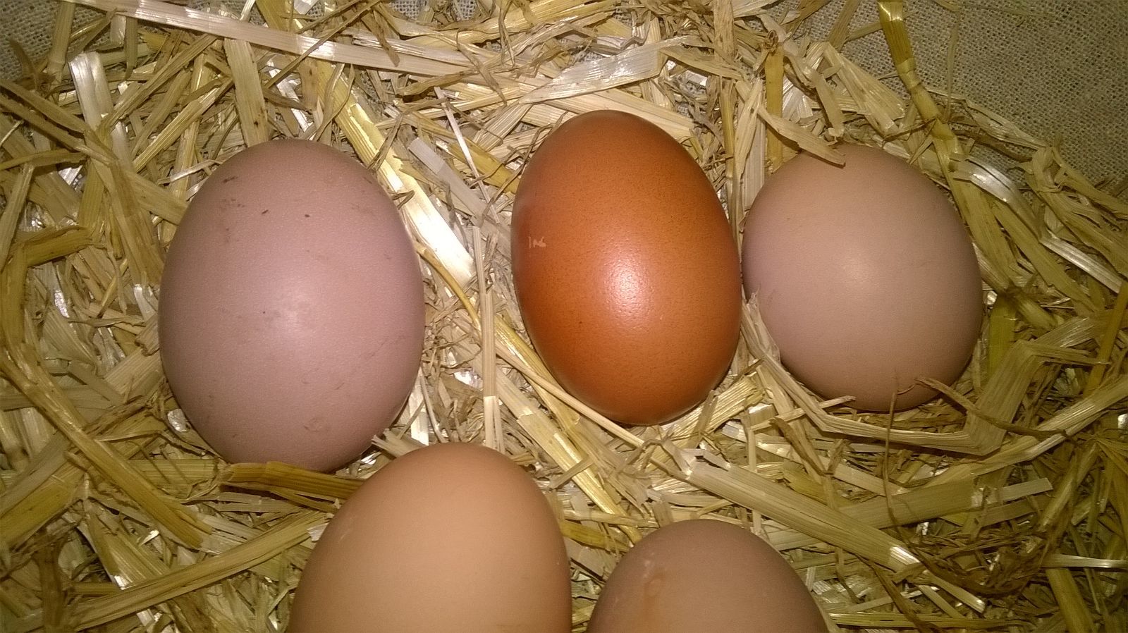 A young pullet decided to lay her first eggs in the middle of winter. I'm interested in seeing if they darken more.