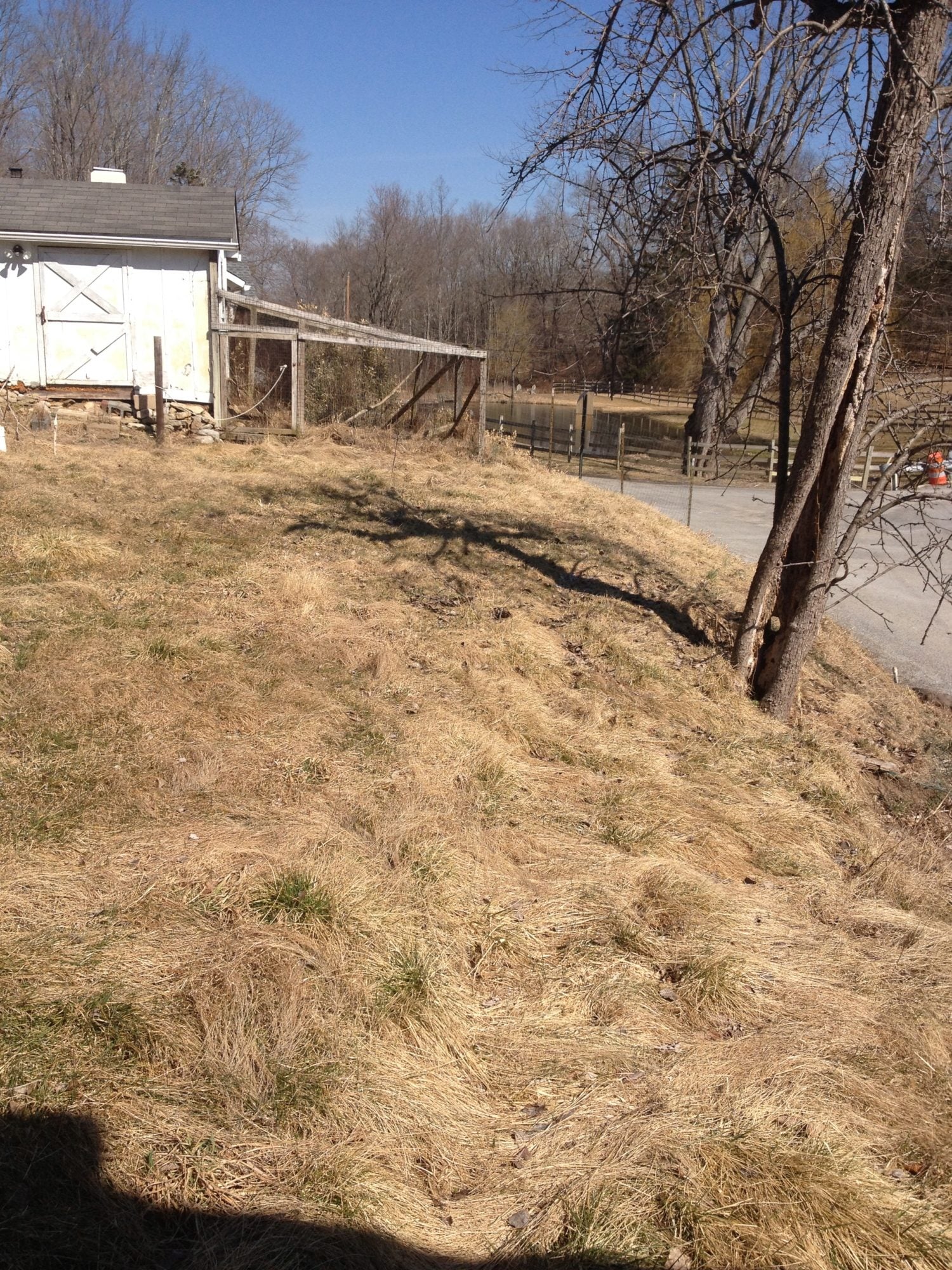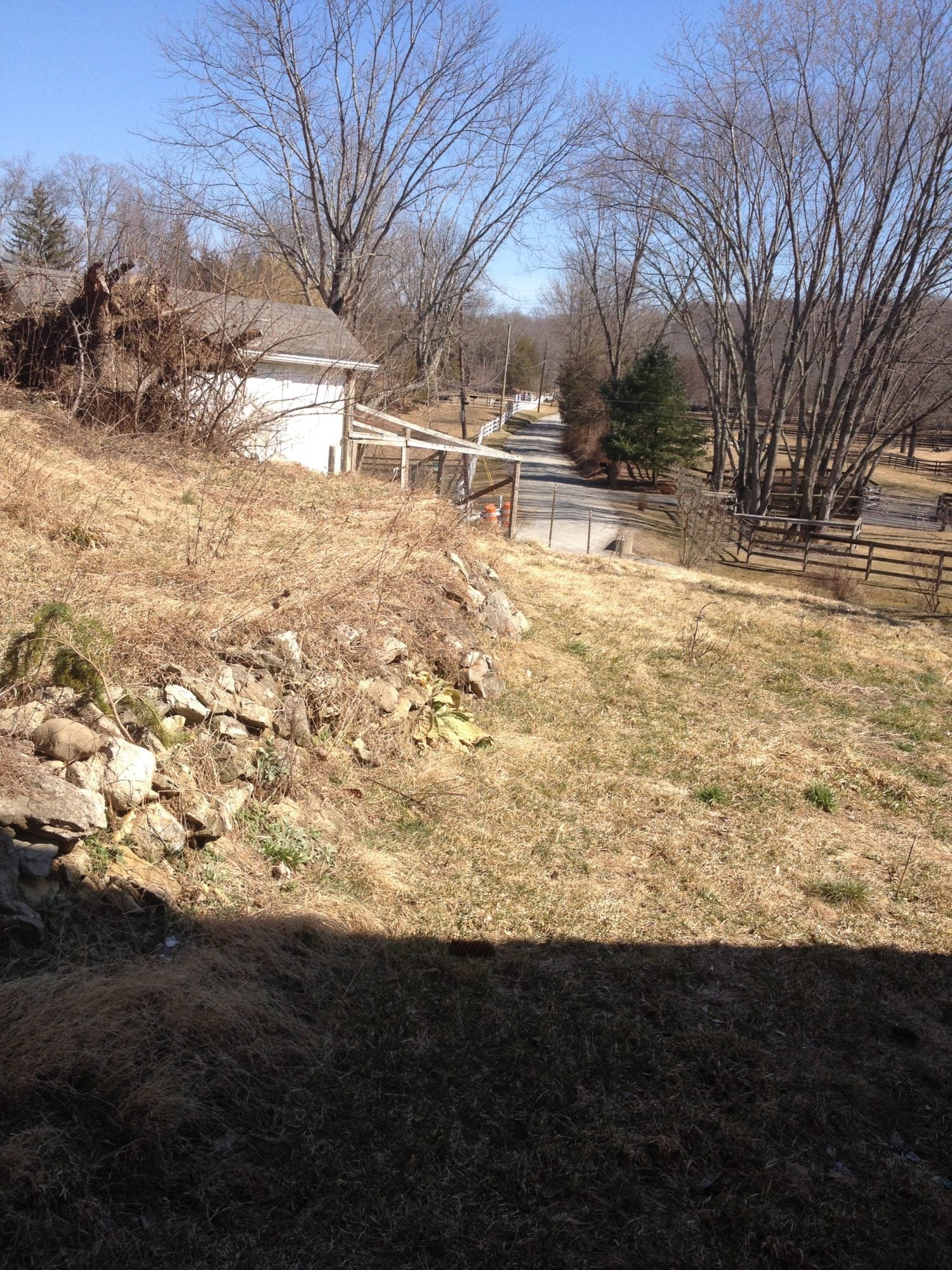 I want to gate here so the chickens can't go down the hill or the stairs. I'm going to fence in at the top of the hill, too.