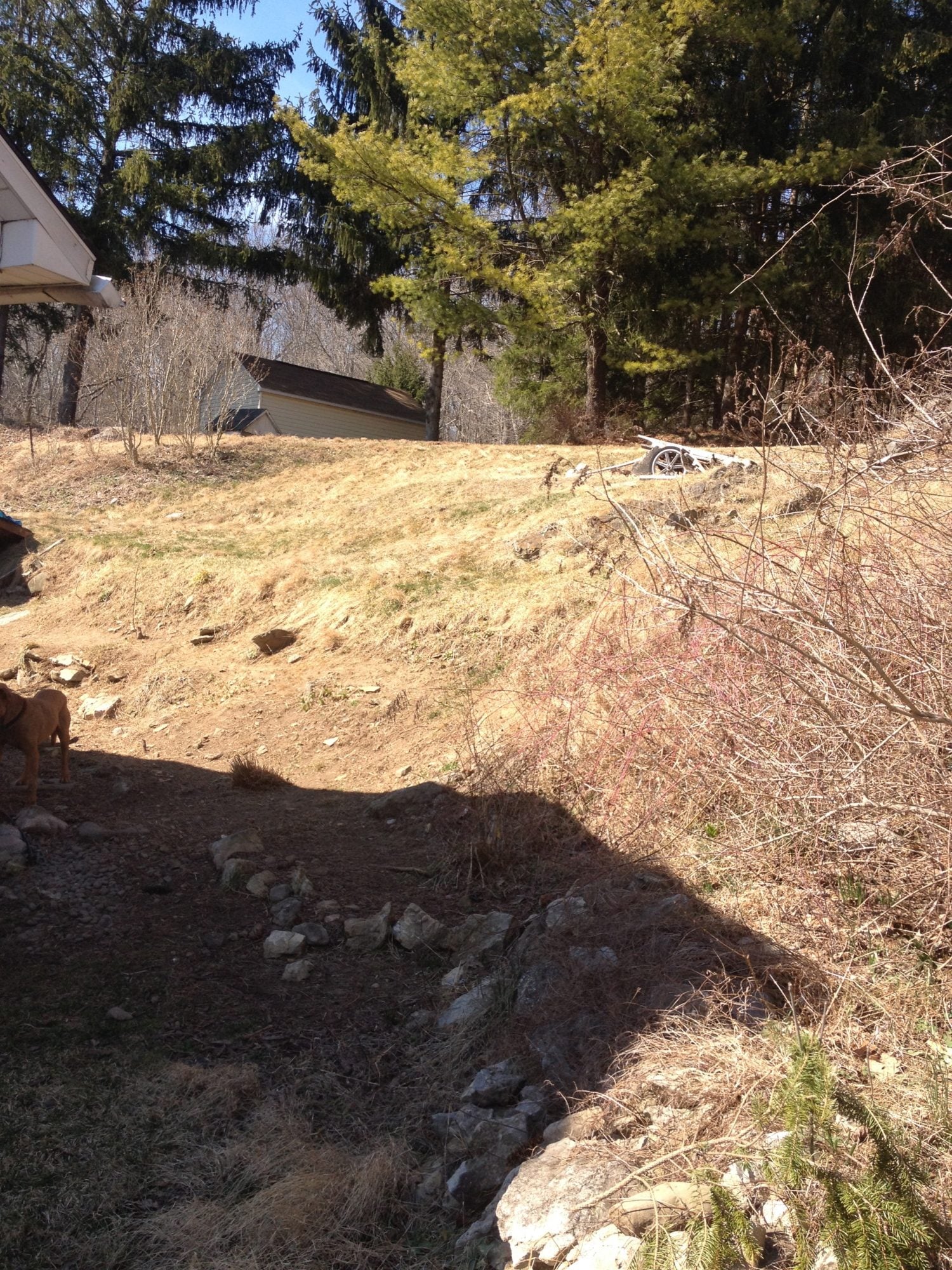 The first level terrace up from the patio. The woodshed is to the left, just out of range of this picture.