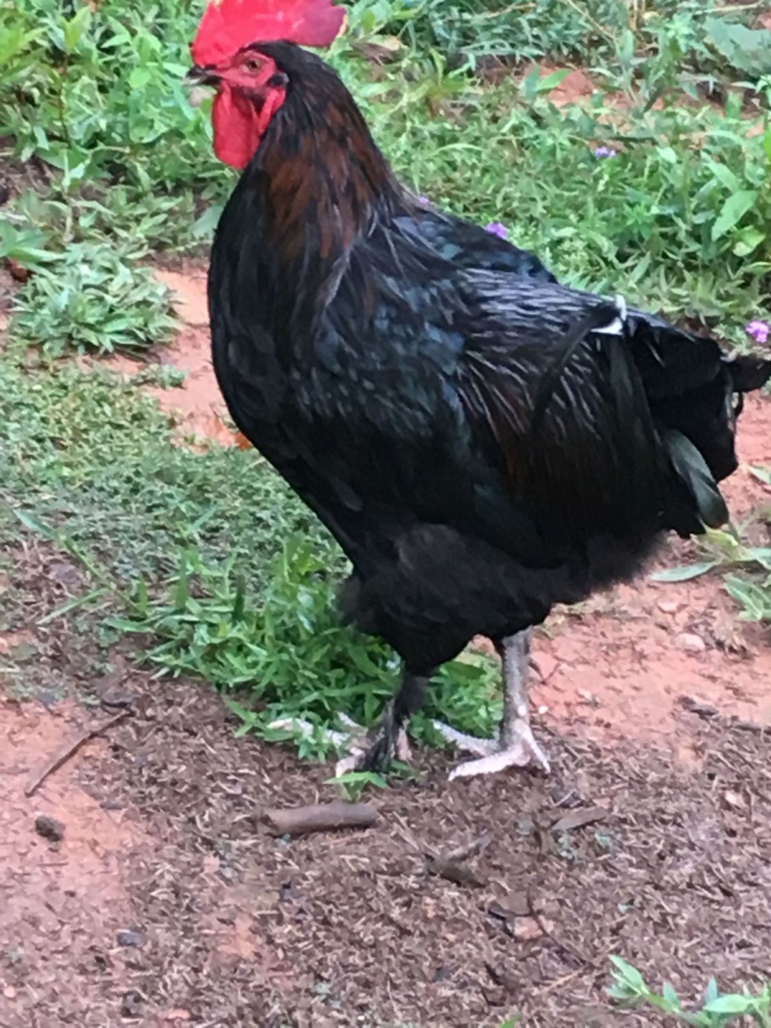 Can anyone tell me what type of Maran rooster this is? He was hatched by a friend who bought the egg at a chicken show - she thought it was Black Copper. This rooster is 6 months old and seems full grown - he has a little copper on his neck and back but is mostly black. Also has a little bit of white on one of his tail feathers.