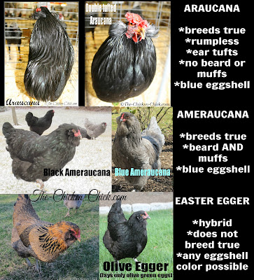 Thank you so much for posting this. I can't tell you how many times I've heard folks call their EEs Araucanas... and I'm politely saying, "You can't get them in a farm store..."