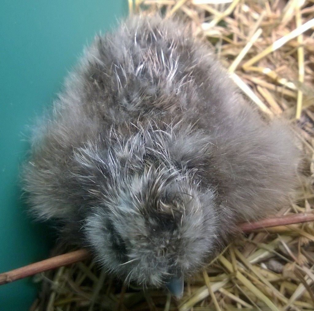 Here's my little surprise chick, it sort of looks dark blue and partridge. I think I'll hang on to this one to see how it turns out. It's little legs and toes are SO fluffy!