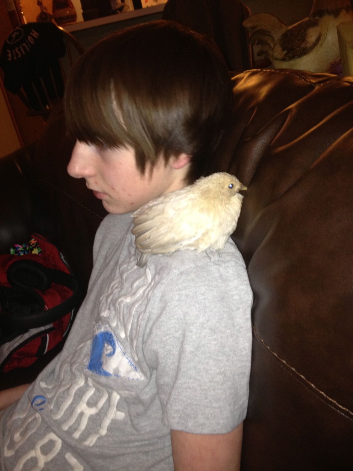 I have them in a make shift brooder bin with a heat lamp and food and water and such. They are in my room, on a table across from my bed. They love to be talked to and like it when someone taps the side and sends them running to inspect. They also will all jump up and peep up a storm when they hear the theme song to Dr. Who (Guess what I have been watching every night for the past week in bed?) LOL