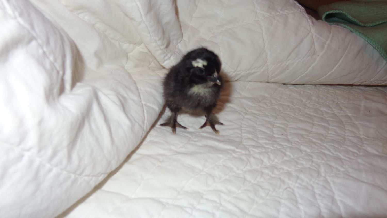 That sounds like they are too cold under the ecoglow. I use an ecoglow 50 and they never pile on top of eachother for any reason :\. I do not use loose bedding until they are around a week old. I start them off on potty pads for dogs.
