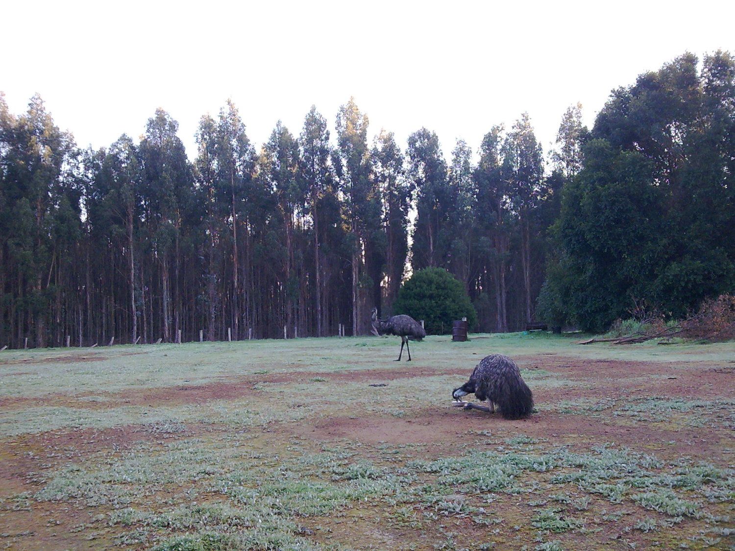 ‘Kay, S.E. has a bunch of stuff to patiently achieve today. Where Ring-In came from must remain a mystery for the moment. In the first moments of the drama, I had to bring Ring-In back to B.E., and was astounded to realise that I couldn’t find B.E. even though I knew he must be within eighty or a hundred feet of where I was standing. I had to go to the end of the aisle, find the landmark, and locate him from it – that is, a nesting emu snuggled down (exhausted) in the leaf litter of a gum aisle is a very very hard thing to find. The area that I’d quarter to find the Unknown Male is several hundred yards square. Gotta leave that project at this second.