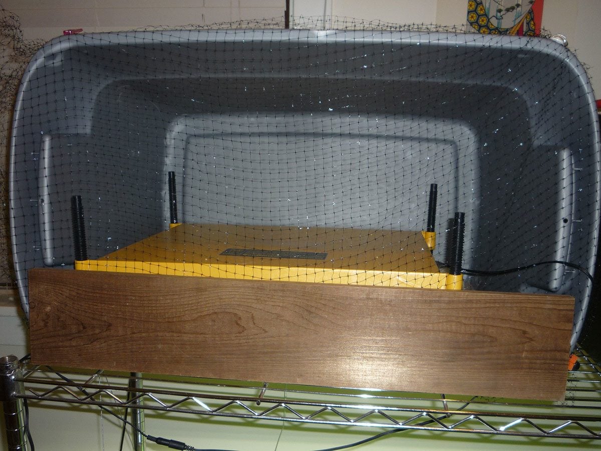 I have started putting the plastic tote on it's side with deer netting, 4 clamps, and a piece of wood to close in heat (when very little).