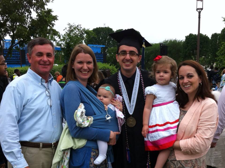 My husband John, daughter in law Emilee, grand daughter Brynn, son John, daughter Danielle and grand daughter Lillian. Graduate from George Washington University, and US Air Force Vet, he did it all on his GI Bill and took care of his family. He is an awesome young man if I may BRAG!