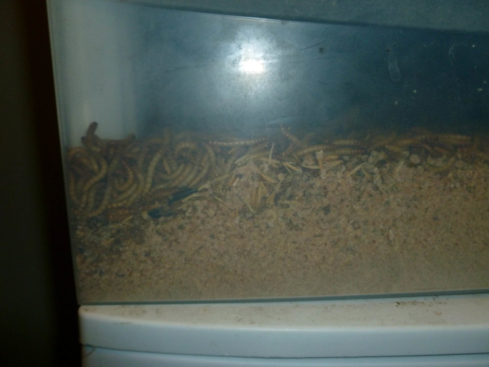 In the last couple of days I've frozen--get this--at least a couple of POUNDS of 'may pupate anytime now' mealies!! And that was only a third of the box sorted, too. This particular box had about 12-14 thousand of all sizes ten days ago or so, but the loss rate is rising and the pupal size decreasing, and I opted to sort out all the big'uns over the course of about a week.