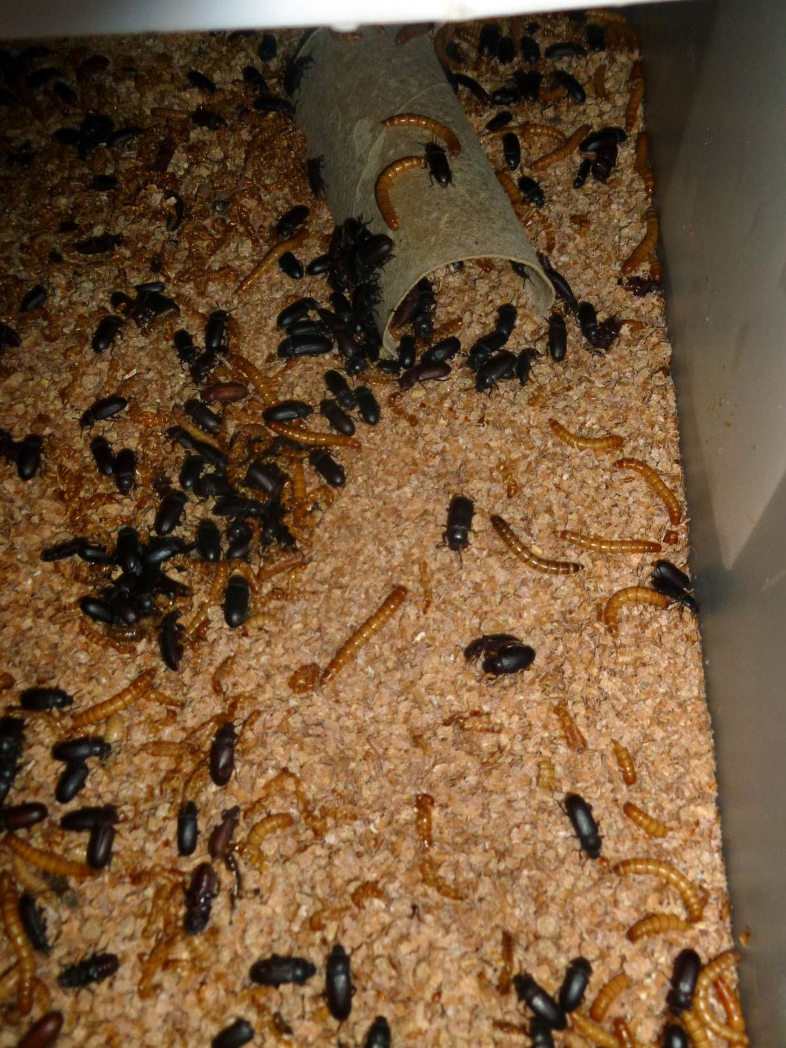 I was all worried when for 2 months I still didn't see any worms and then I finally spotted them in 1 drawer. Now the other day I found them in another drawer so I moved all the beetles to the bottom drawer so soon I should see some in there also and I will have, hopefully, 3 different stages of worms. I plan on freezing some for the winter months. My chickens will be so happy. Yippee!!