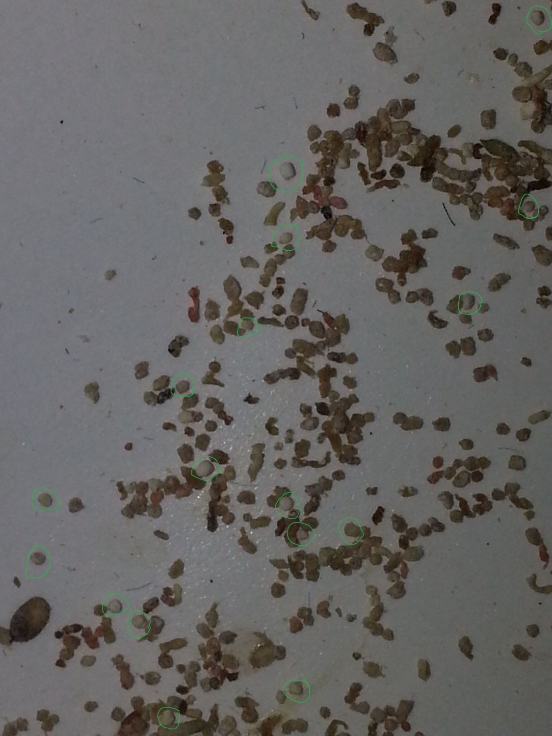 OK so i took a look with a higher magnification and have circled the real eggs in my paint program