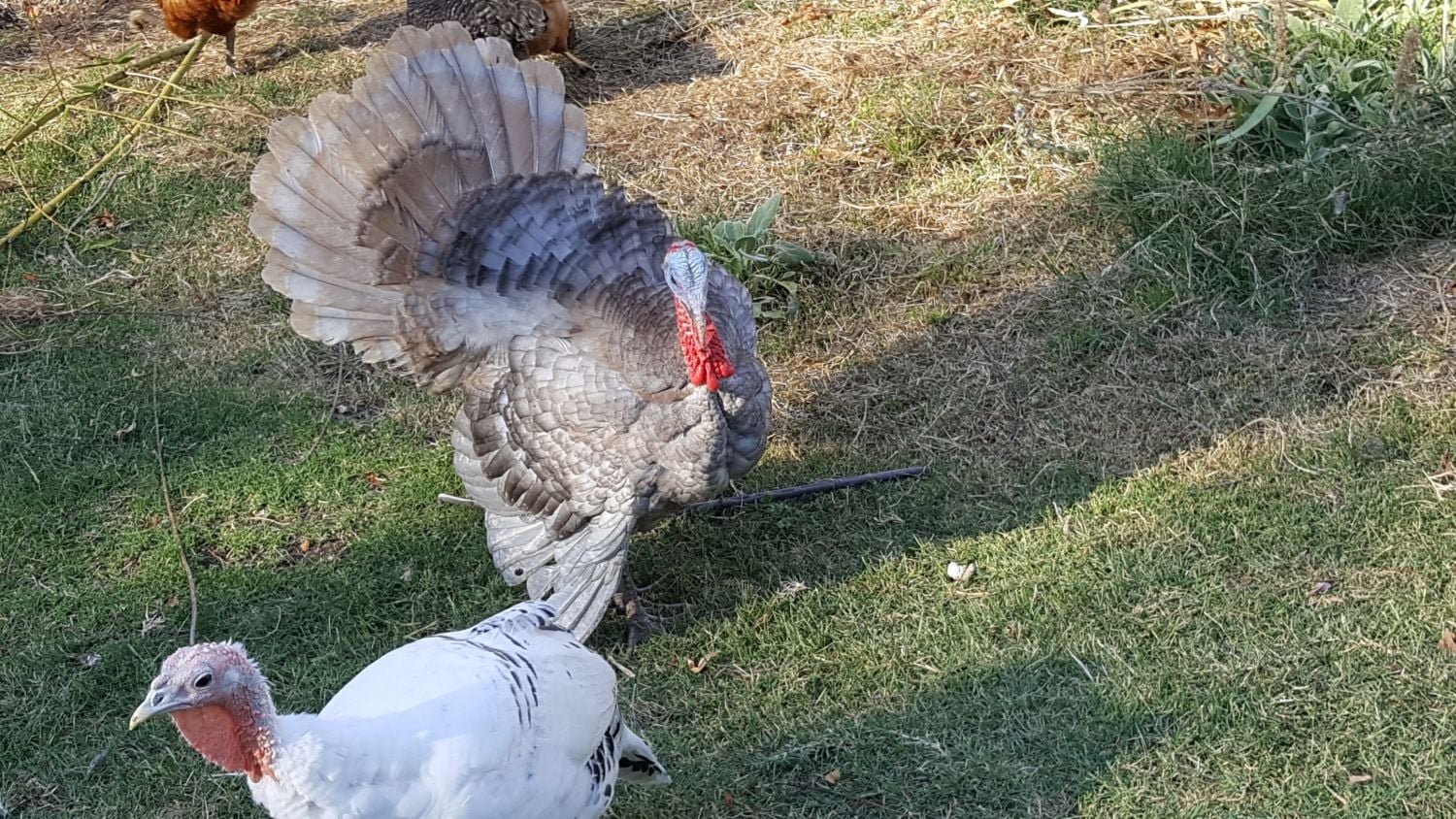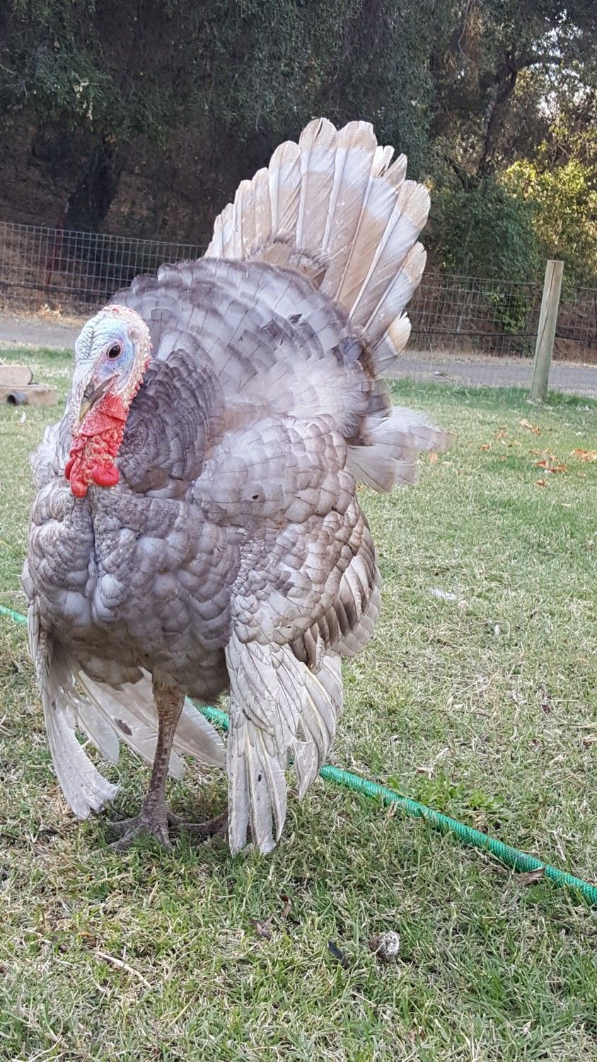 He got his name because he makes a noise that almost sounds like a sneeze, or so I thought at first until my hubs set me straight, but turns out to be a Gruff sound. His Tom Sire is a Bourbon Red, his Hen mother is a Lavendar! I think he is handsome. Only about 4 1/2 to 5 mos old!