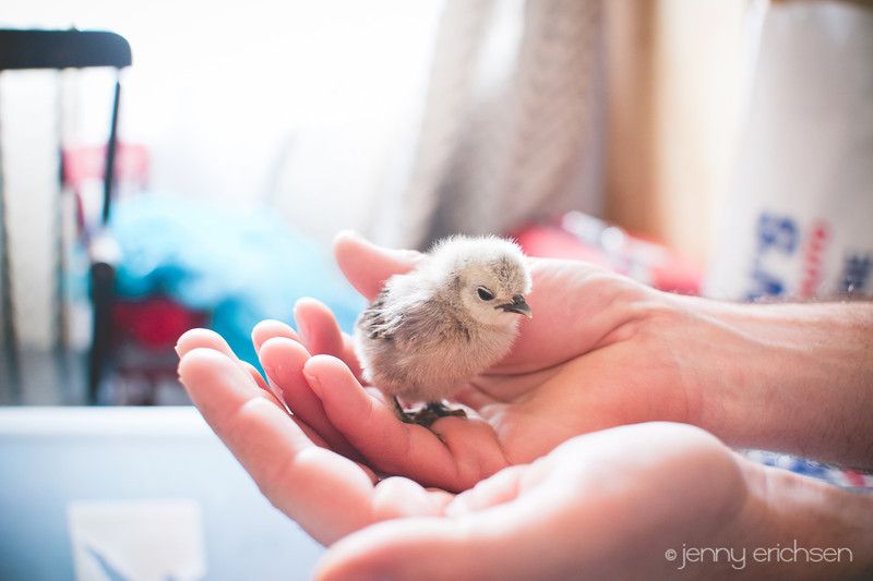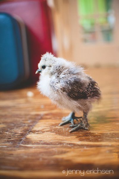 She (he?) was the "runt" of the silkie chicks we brought home on March 8th, and was of course named "The Baby." The girls then turned that into "Total Baby" and the 4 year old even lovingly called her "Terrible Baby" because that's what she thought her older sisters were saying.