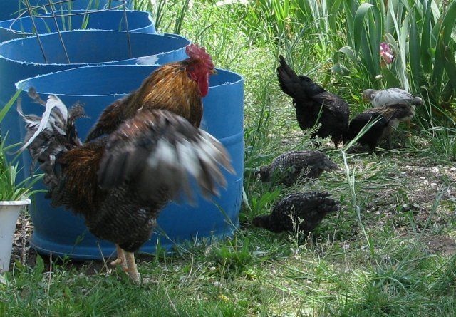 I'm going to try and attach two pictures of Xena Warrior Chicken, who is our best mama. She showed up last year with 10 brand new kids, and then raised another 13 later in the summer. This summer she's got 10 kids.