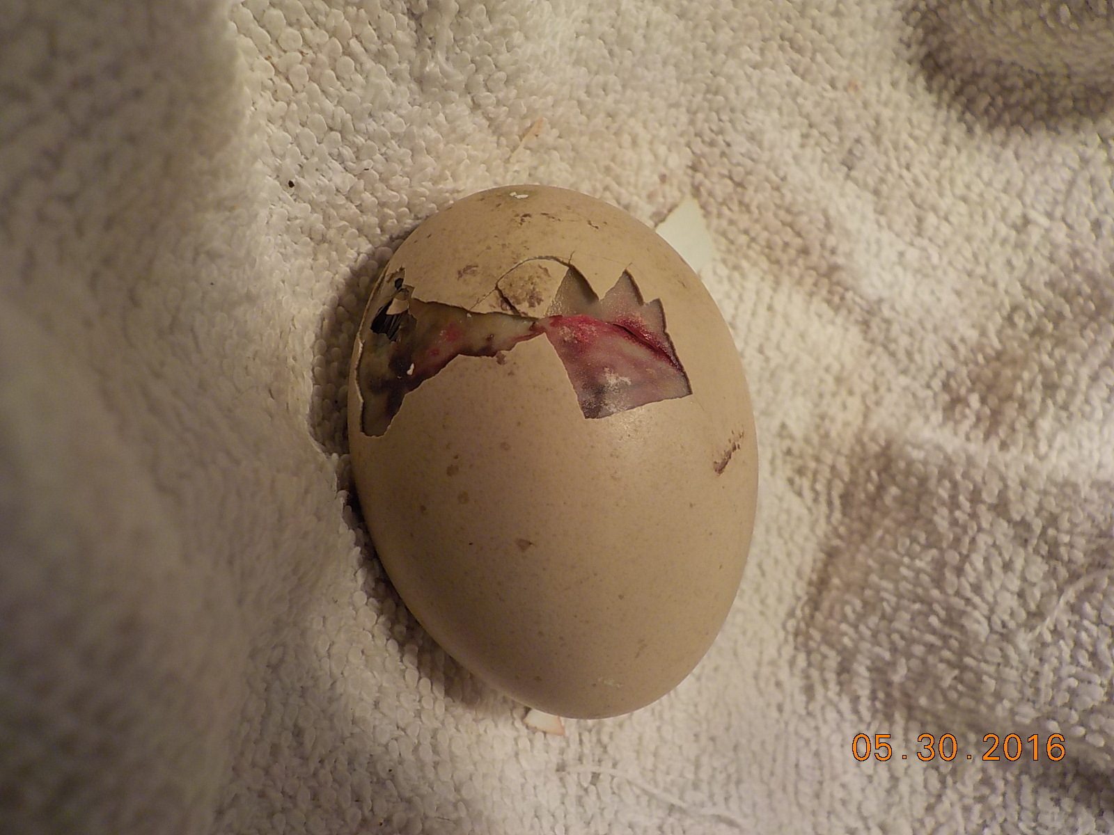 I have an egg that's zipping, but the membrane doesn't look that good. The chick is peeping healthily, but the membrane has blood on it that doesn't seem completely right. Here is a picture.