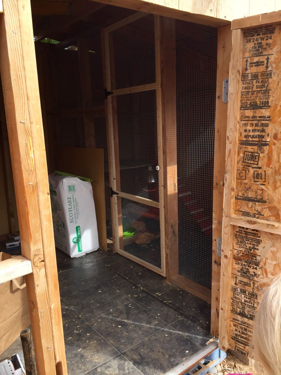 We have also started our coop and will have it completely done when my mom brings them over tomorrow. It is an 8x8. The chickens part will be 3 1/2 x 8 and the rest will be a play house so to speak for us to hangout with our chicks.
