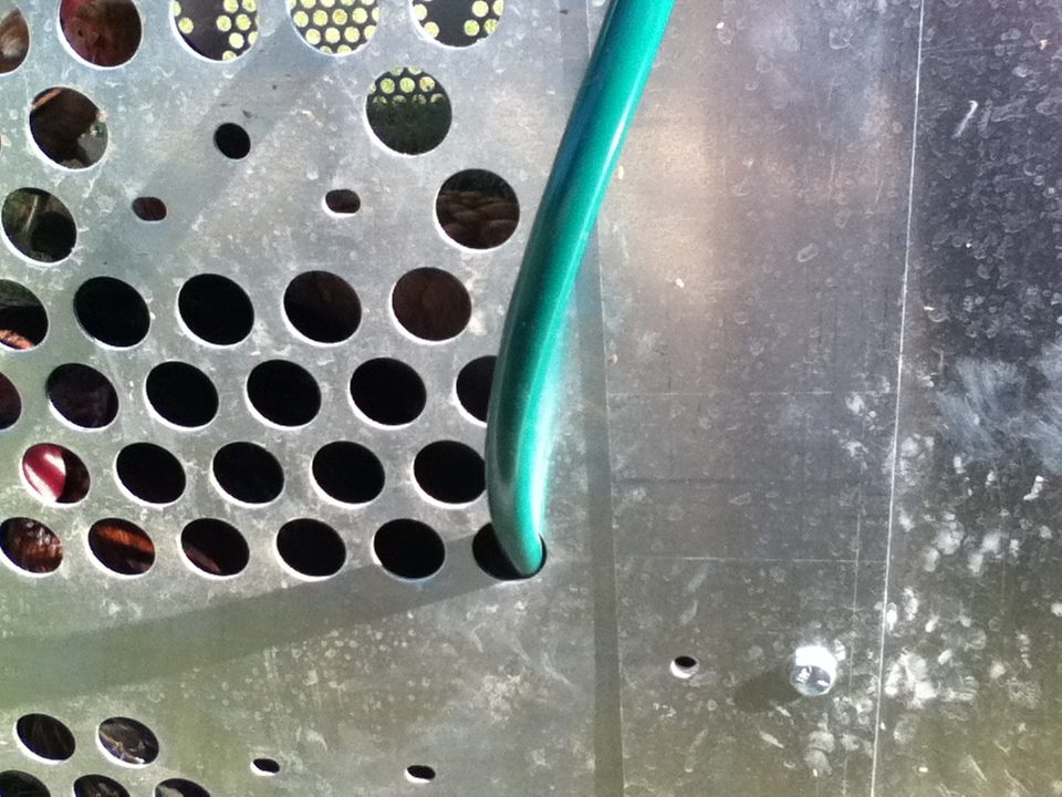 I have thought about putting something on top of our tractors to hold the water. For now we are using hanging 2-liter bottles with the chicken nipple drinkers on them, but they are too low. I think since we are building several more we will simply make them taller so the water hangs at the right height.
