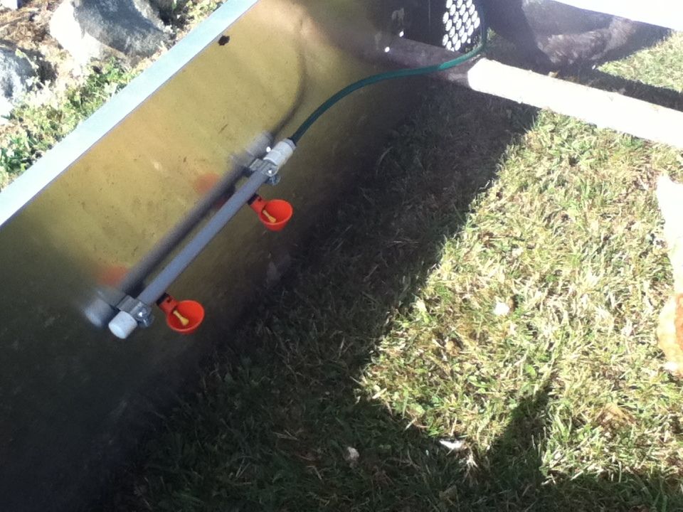 What a coincidence! I just installed the two cup watering system, which can be ordered with the coop. Here are some pictures I just took today.I don't see anything about water. Which is the biggest challenge I am having with my tractors. We've tried several hanging waterers, and they all have flaws.