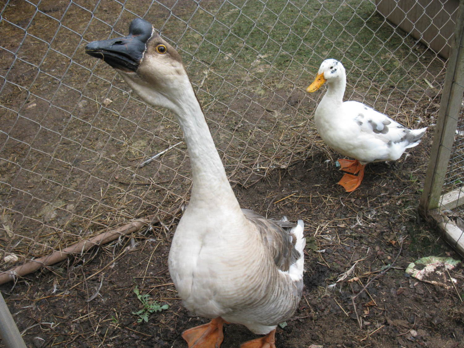 My "goofy" super African gander I purchased last year (with my Ancona duck).