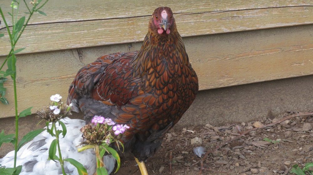 Violet the Dorking is really gentle and calm and pretty, with such long, fluffy feathers--this pic doesn't do her justice.