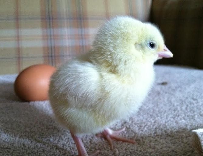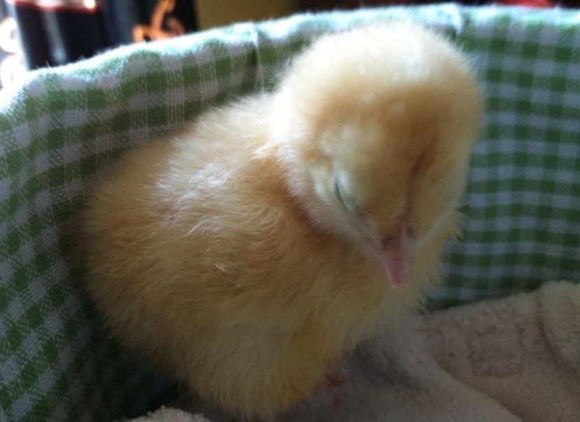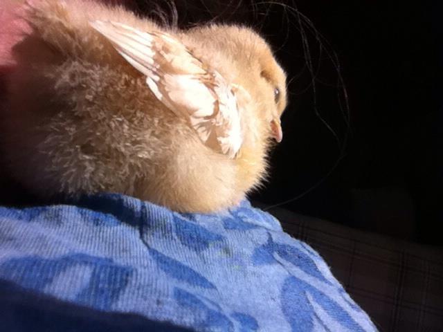 Our Buff Orp 2 days old, note redish golden color on head