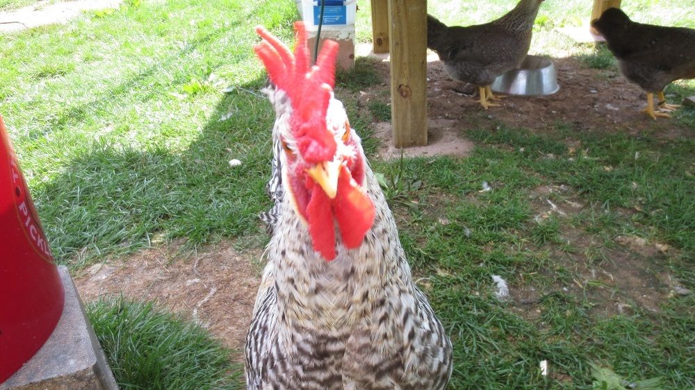 And my Cream Legbar rooster, Westley, who is brother to Peach. He is really starting to fill out and get bigger. I think he is happy that the older rooster, Beaker got sold last week. Since then he has horned in on Beaker's pullets, as well as his own four. Except I think the Langshan girls are too big for him, and the legbar girls still run away. Even with their red combs, I don't think they are ready yet.