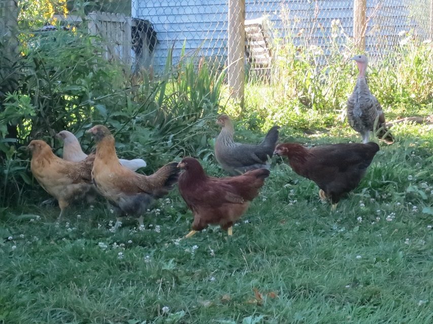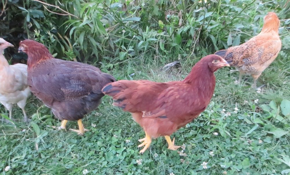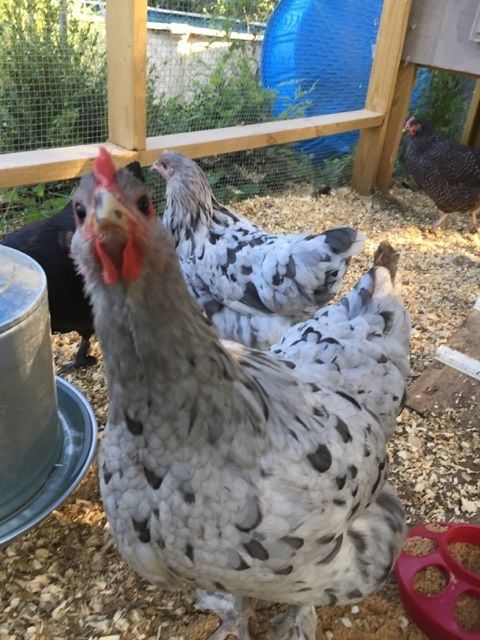 Wooo Hooooo. We got our first egg today!!! We think it was Coco CHanel (upper right). Clara Barton upper left is the survivor from our home crop surgery and is doing very well!