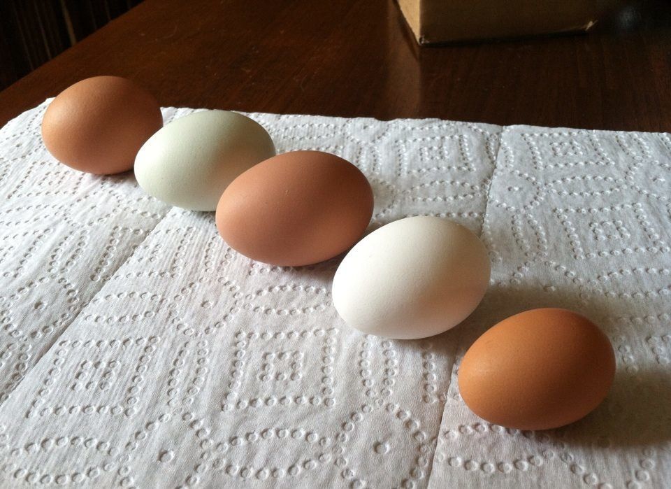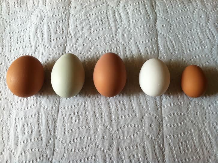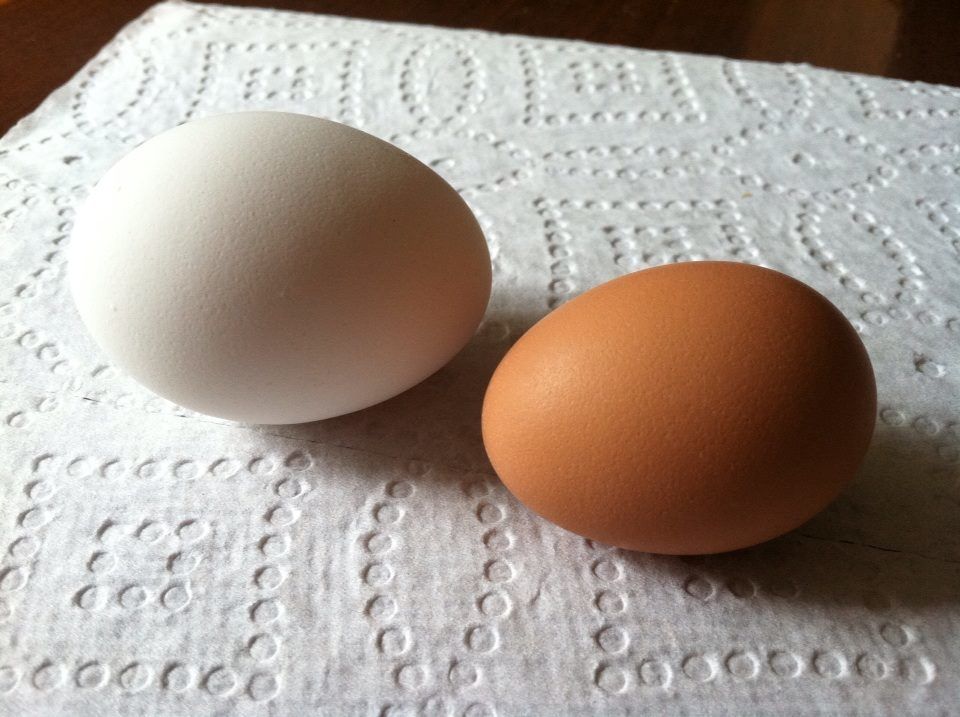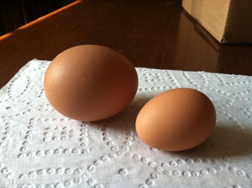 And next to Victoria's small white eggs. This was about the size of most of our girls first eggs. Victoria's eggs just haven't gotten much bigger.