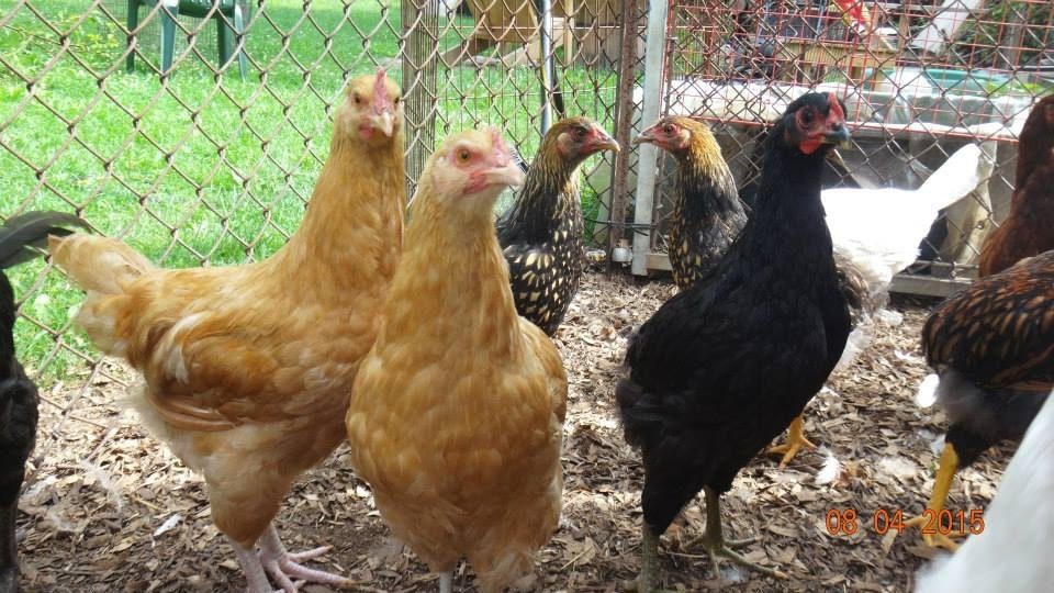 I cant tell if some of these are hens or roos. Theres two blacks with smaller combs and a buff orp with a smaller comb some might be from adopt me bargain and others are fry pan.