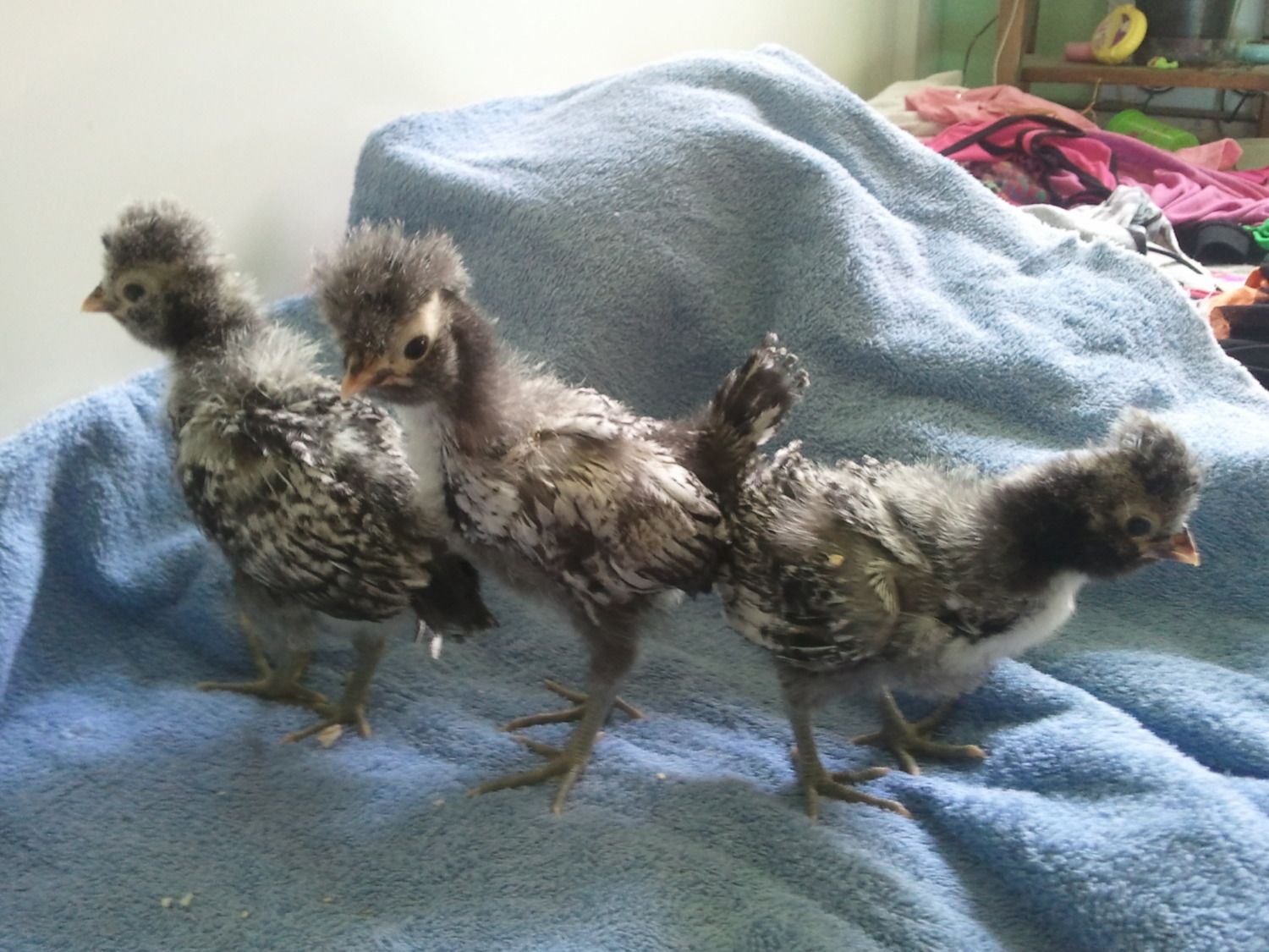 These are the 3 replacement chicks that have made it out of the 6. Cream, Oreo, and Cookies. We plan to keep Cookies and Cream (if she really is a she, her crest is almost non existent so we'll have to wait and see on her)