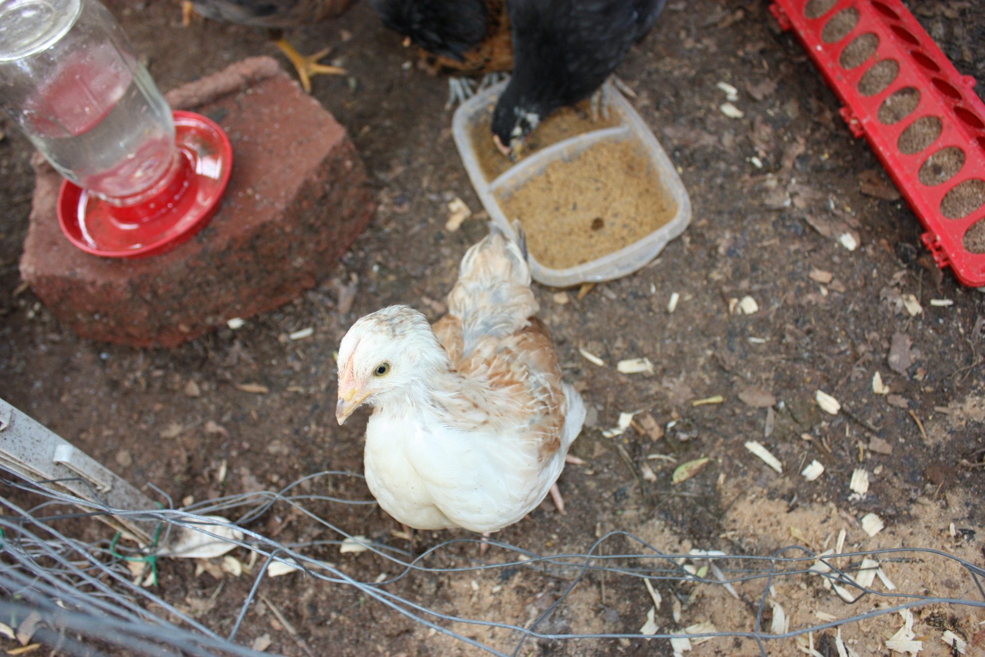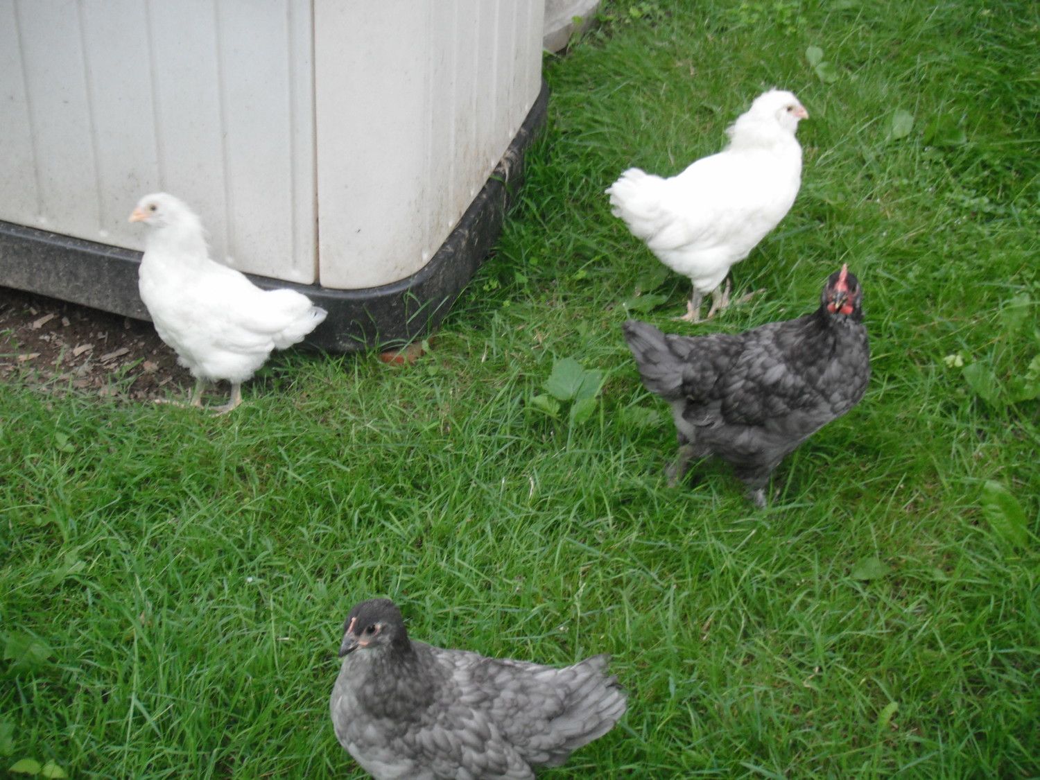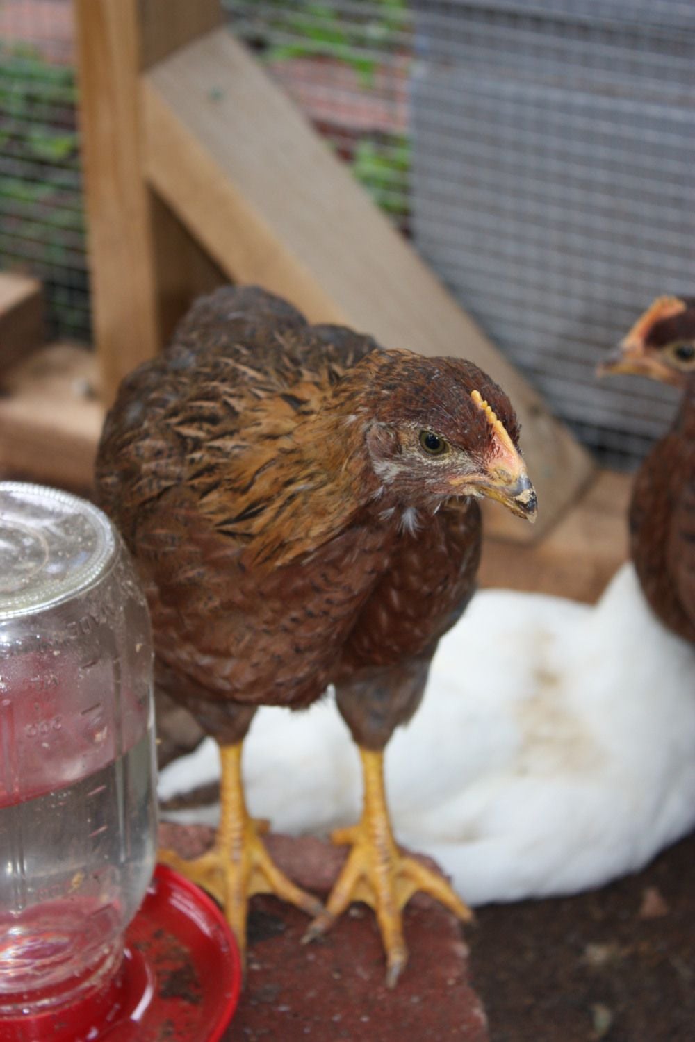 So, our chickens are now around 6wks old and looking good. I'm mostly posting here because I'm curious what I have. I ordered 3 blue copper marans which I definetly have - they're looking great - and 3 blue americauna's, one of which died ~ 3 or 4 days after it arrived (so *just* outside meyer's garuntee). However, they are definelty *NOT* blue americauna's - they're pure white. I'm hopeful that they are sitll americauna's and will give us blue/green eggs but am curious to see what folks on here think they are.