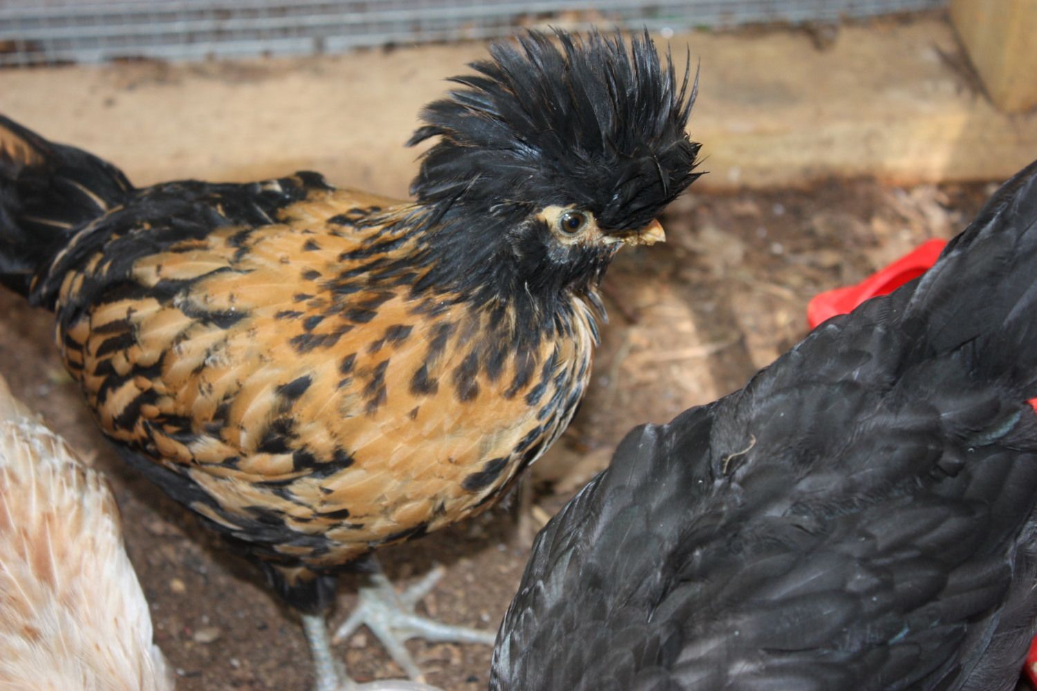 Elvis (formally Zorro) Golden Laced Polish - she's the one I am not sure is a hen or rooster, but no signs of acting like a rooster so hopefully a hen